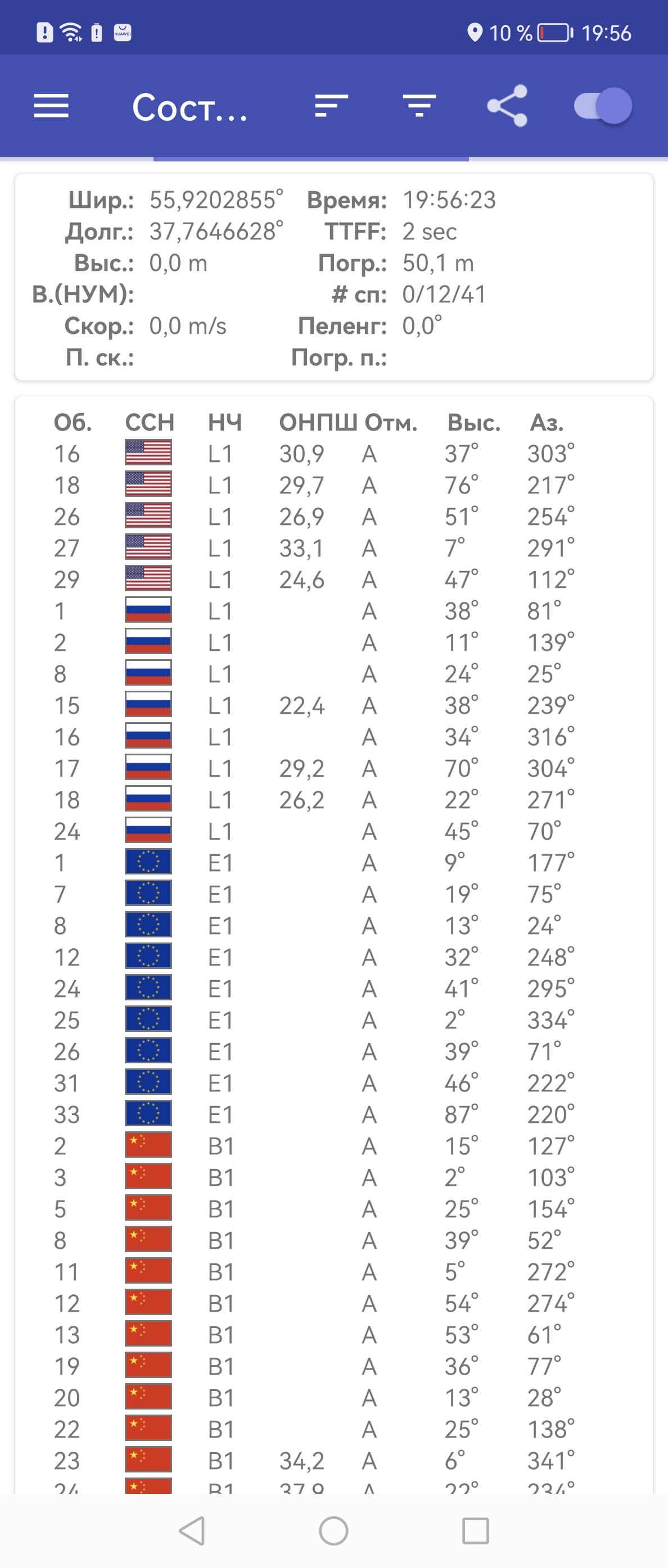 Навигационный модуль работает со всеми известными навигационными системами, включая GPS (с A-GPS), Глонасс, BDS, Galileo, а также QZSS и NavIC. Первые спутники при холодном старте обнаруживаются быстро, точность позиционирования не вызывает претензий.