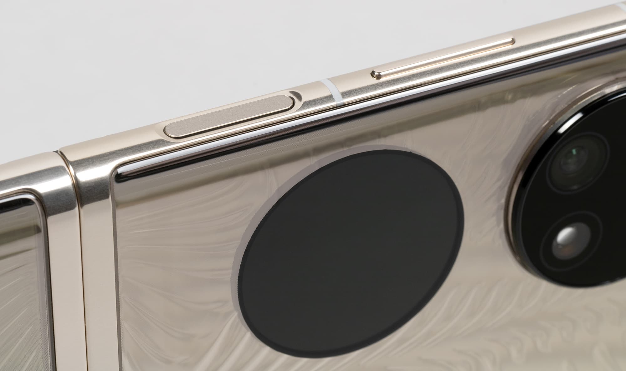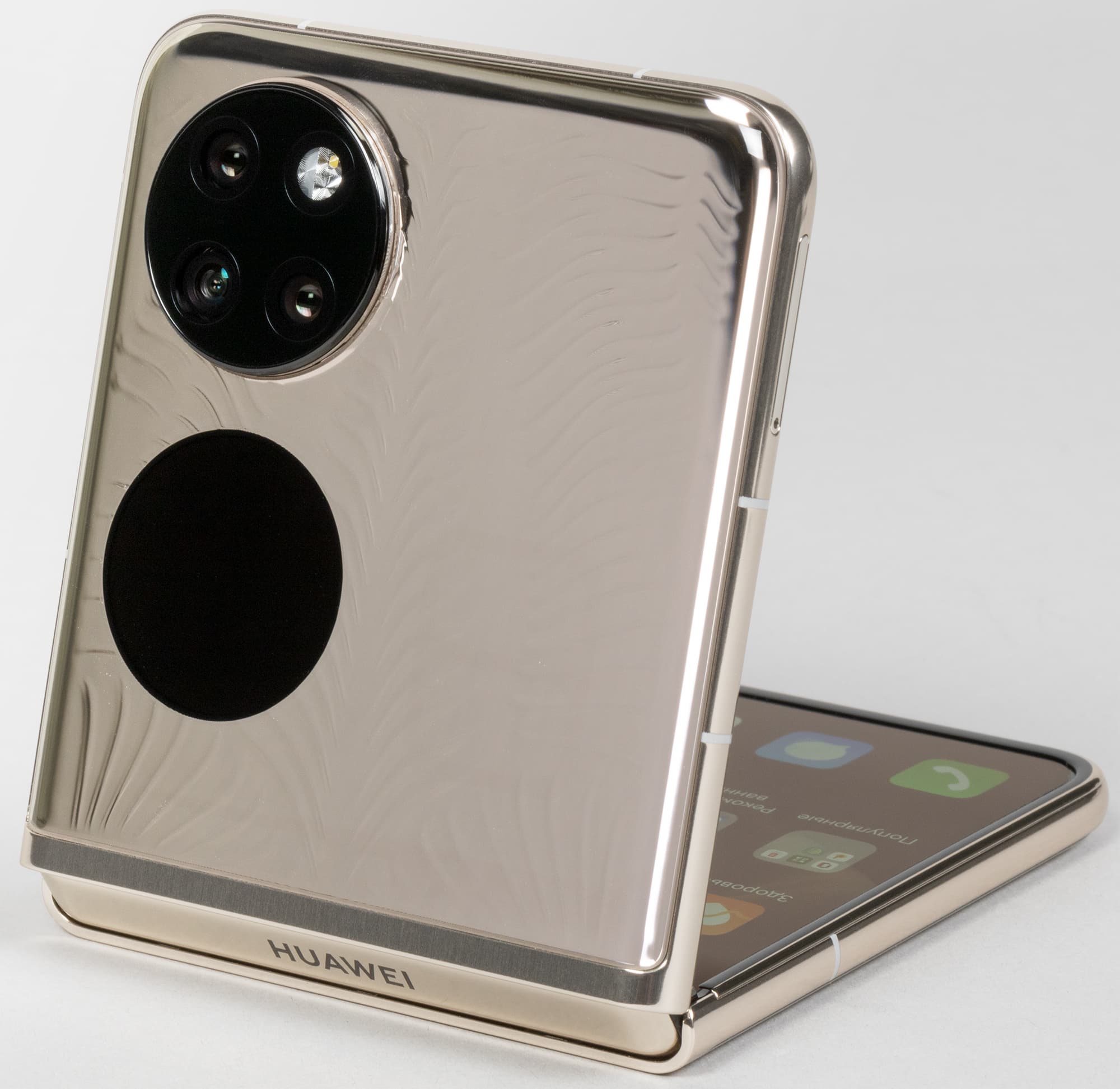 Смартфон Huawei P50 Pocket имеет набор из трех камер, вписанных в круглый выпирающий блок: