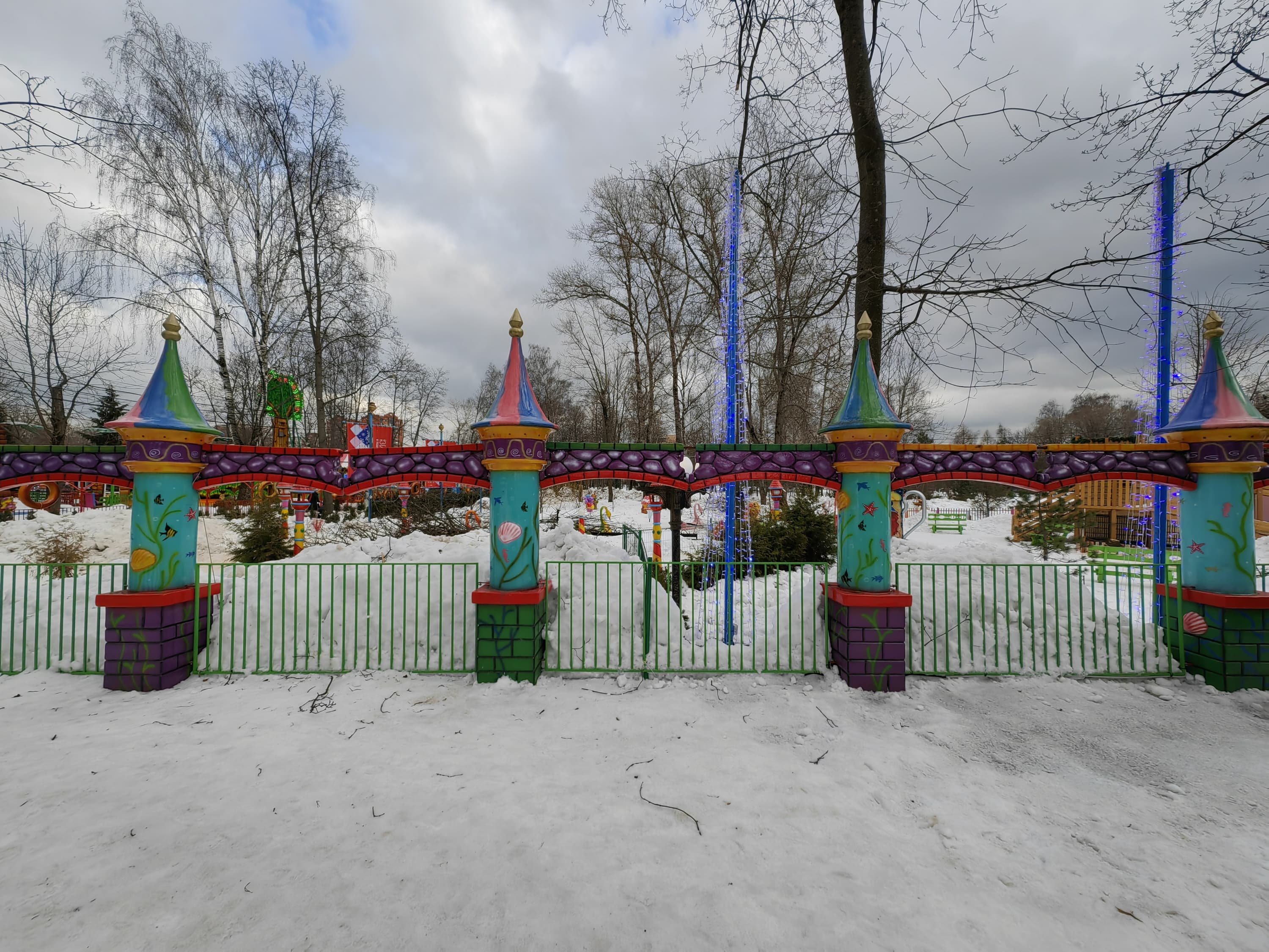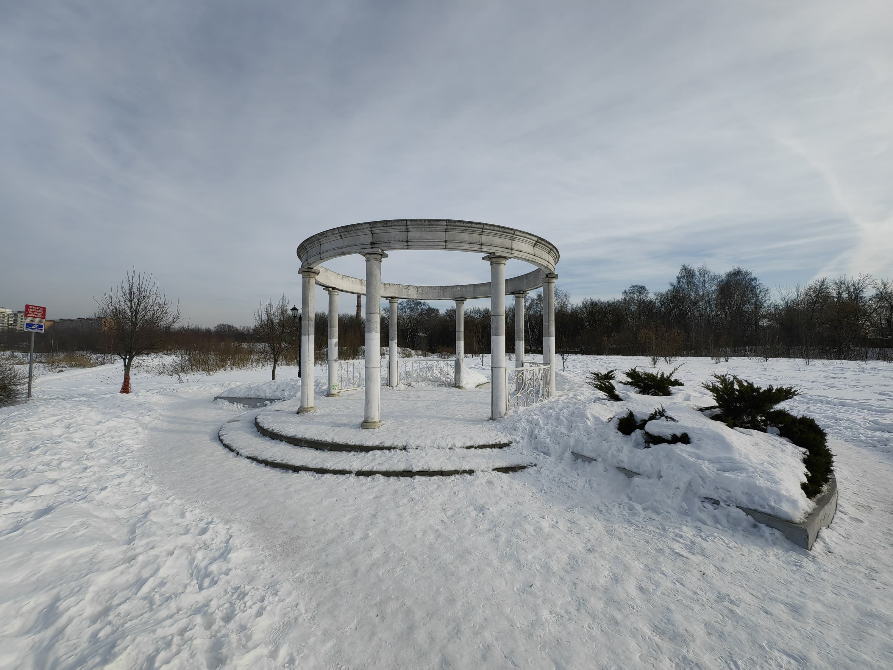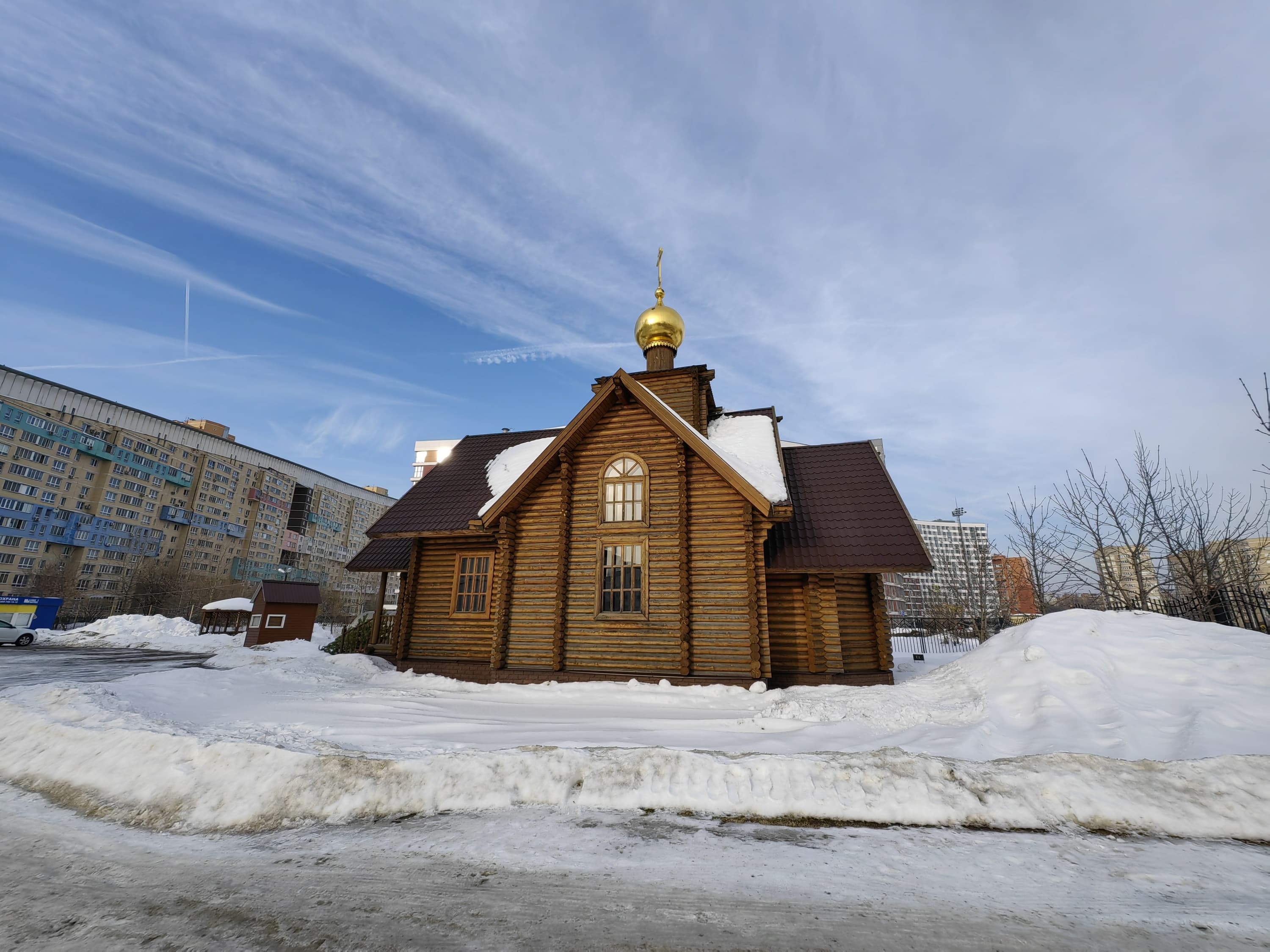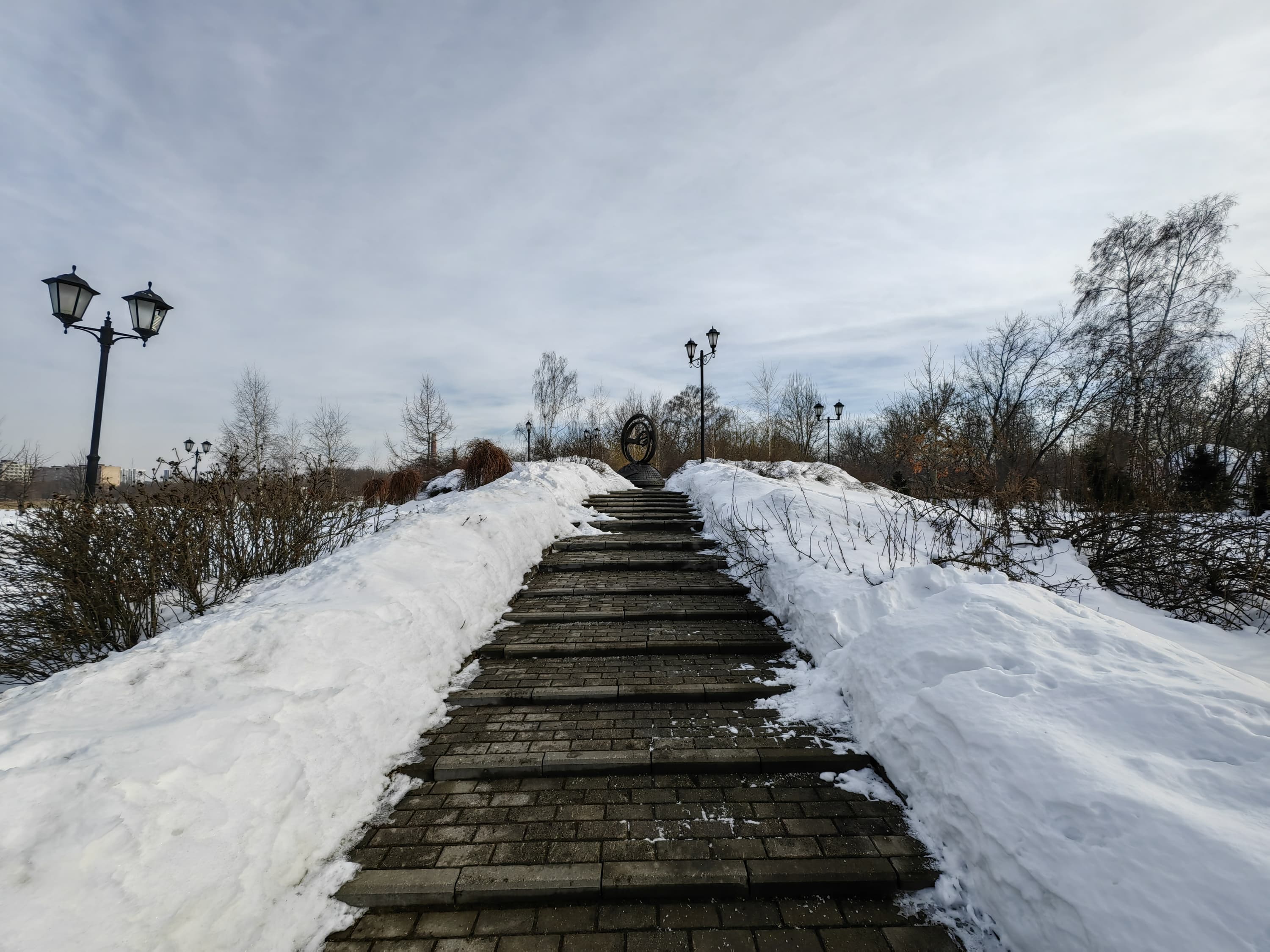 Широкоугольный модуль (120 градусов) выдает менее детализированную картинку с чуть меньшей яркостью. С балансом белого камера справляется вполне достойно, даже в условиях обилия снега в кадре. Контрастность и четкость тоже на высоте. Смазы на самых краях кадра тут имеются, но это дело обычное. В целом широкоугольный модуль получился весьма достойным по сравнению с большинством аналогов.