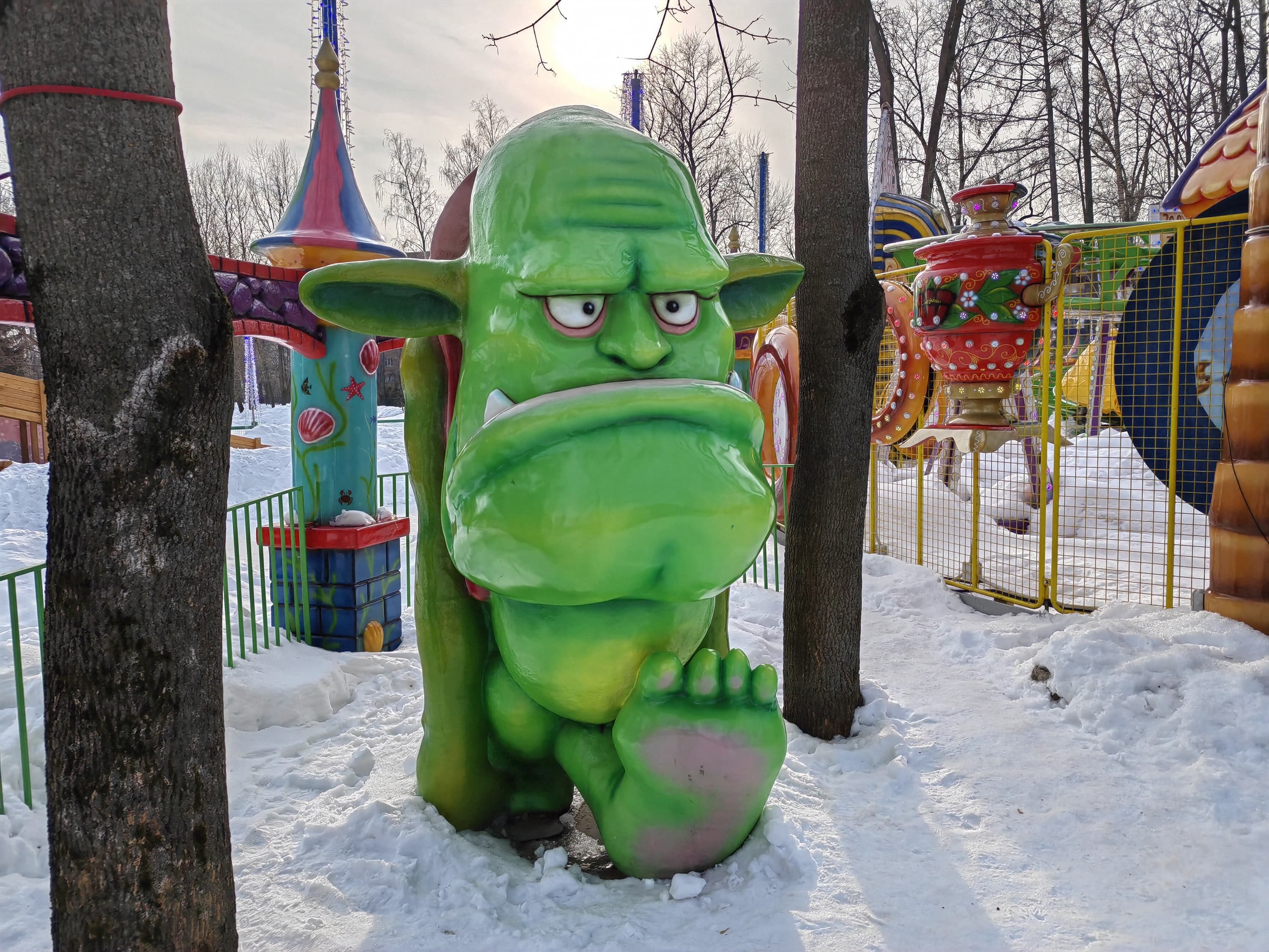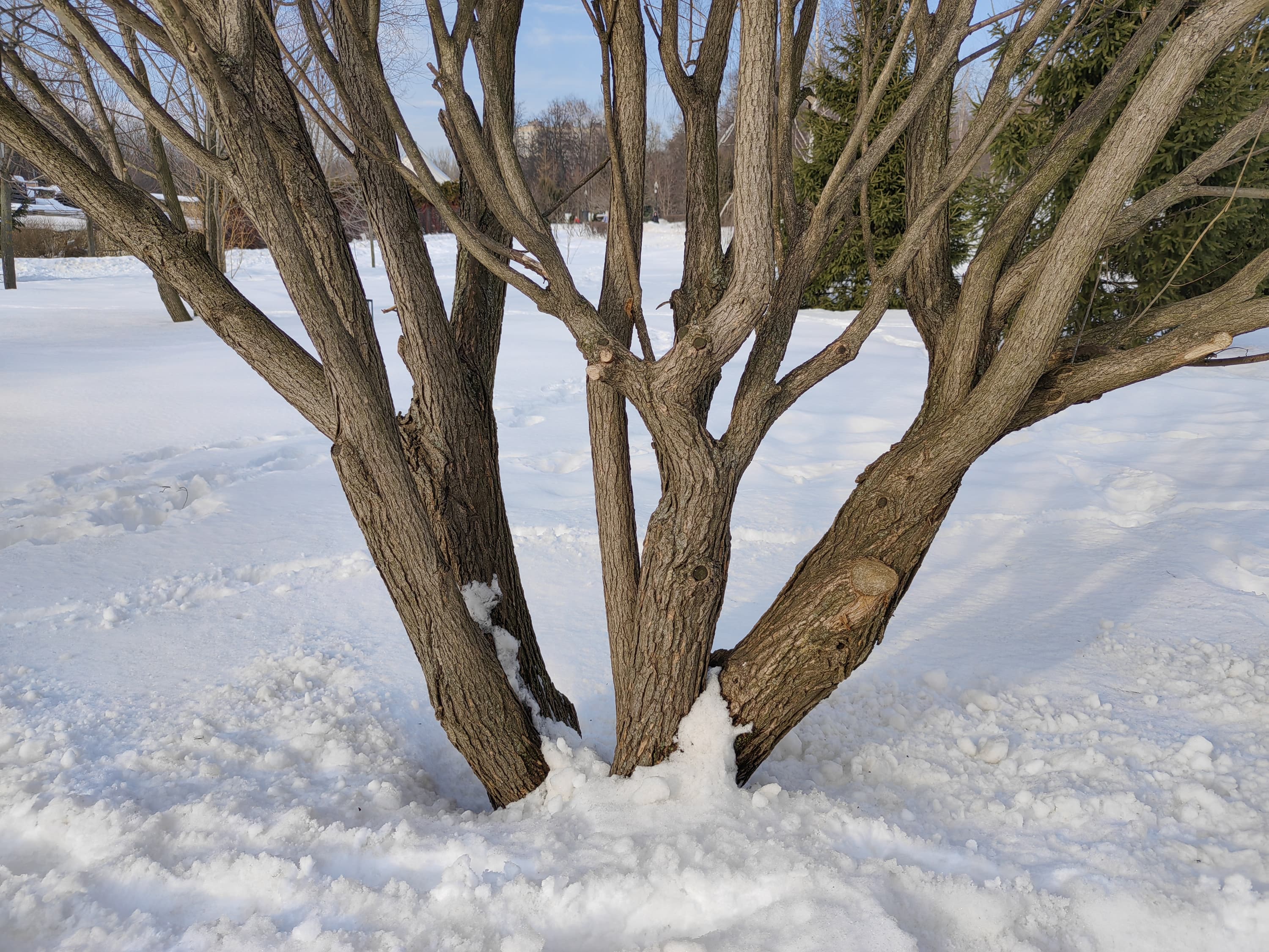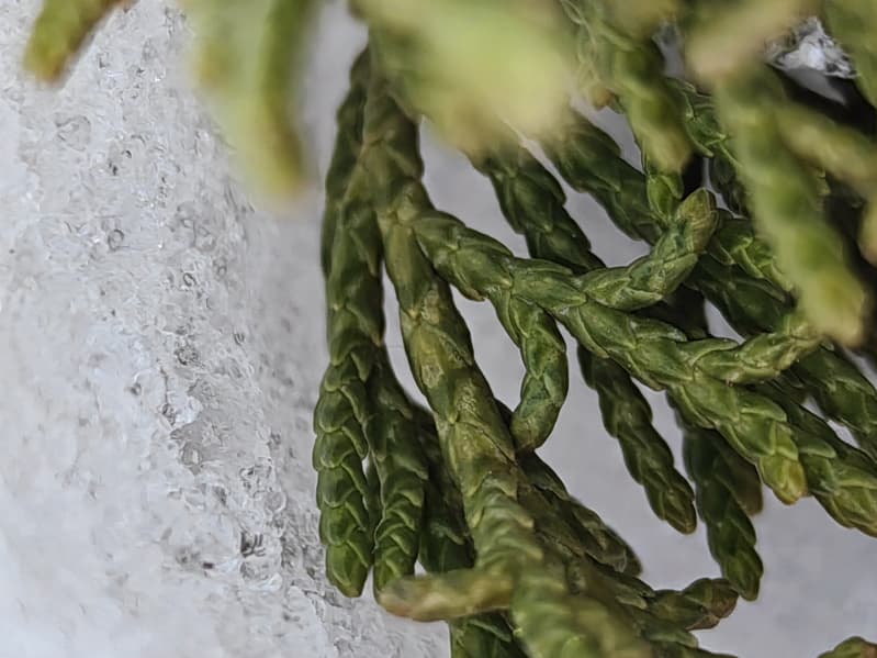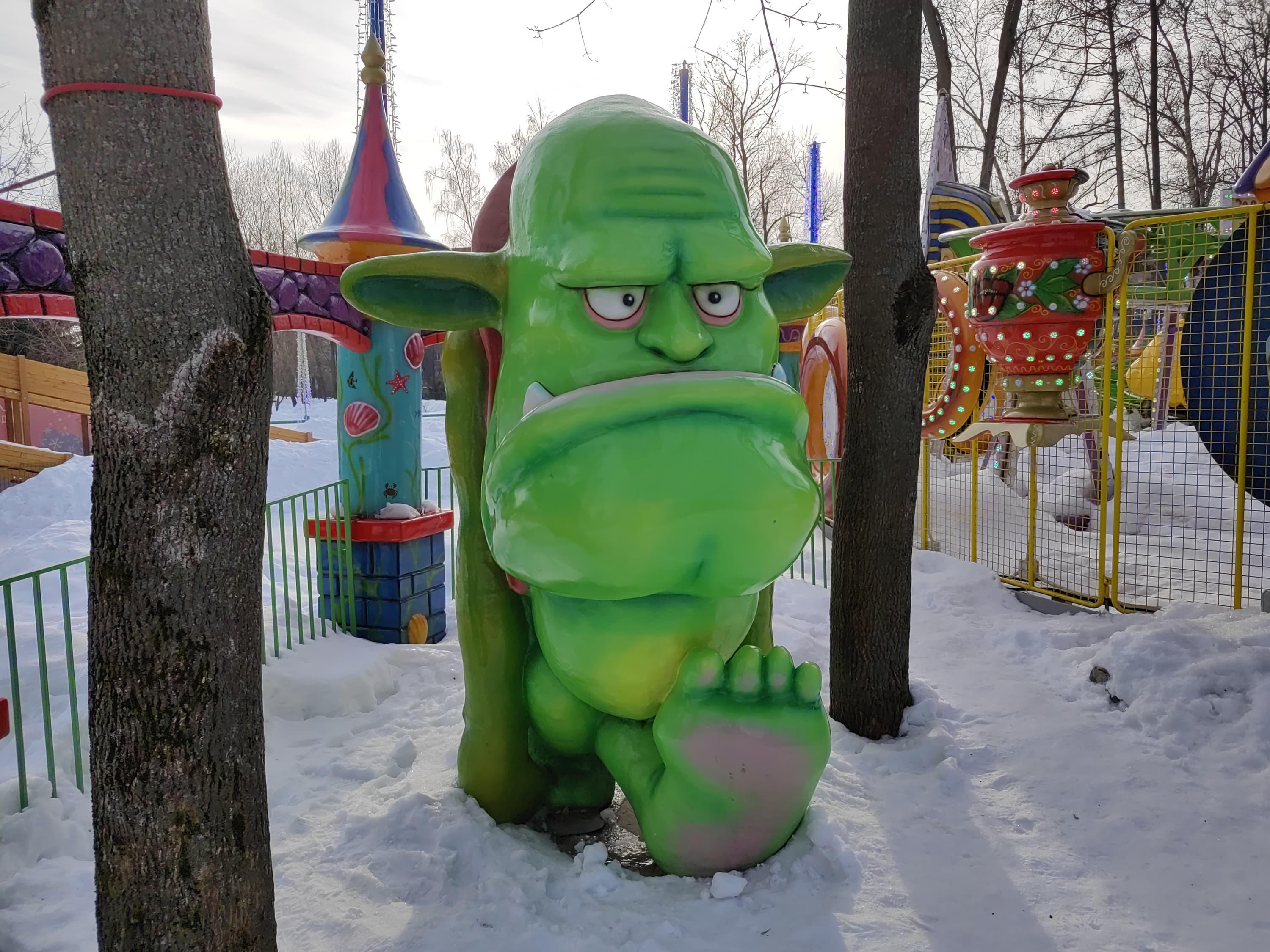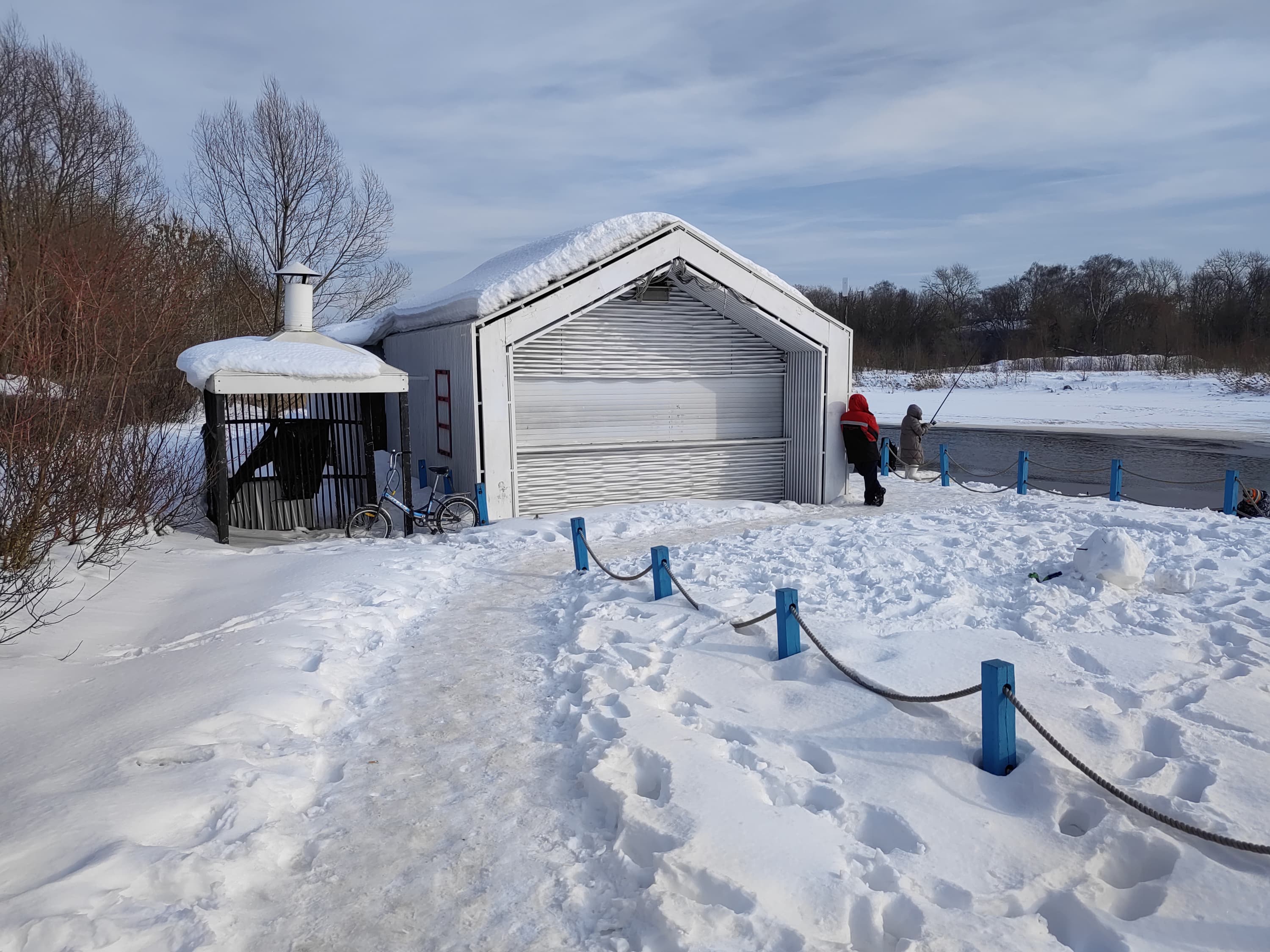 Широкоугольный модуль (120 градусов) выдает менее детализированную картинку с чуть меньшей яркостью. С балансом белого камера справляется вполне достойно, даже в условиях обилия снега в кадре. Контрастность и четкость тоже на высоте. Смазы на самых краях кадра тут имеются, но это дело обычное. В целом широкоугольный модуль получился весьма достойным по сравнению с большинством аналогов.