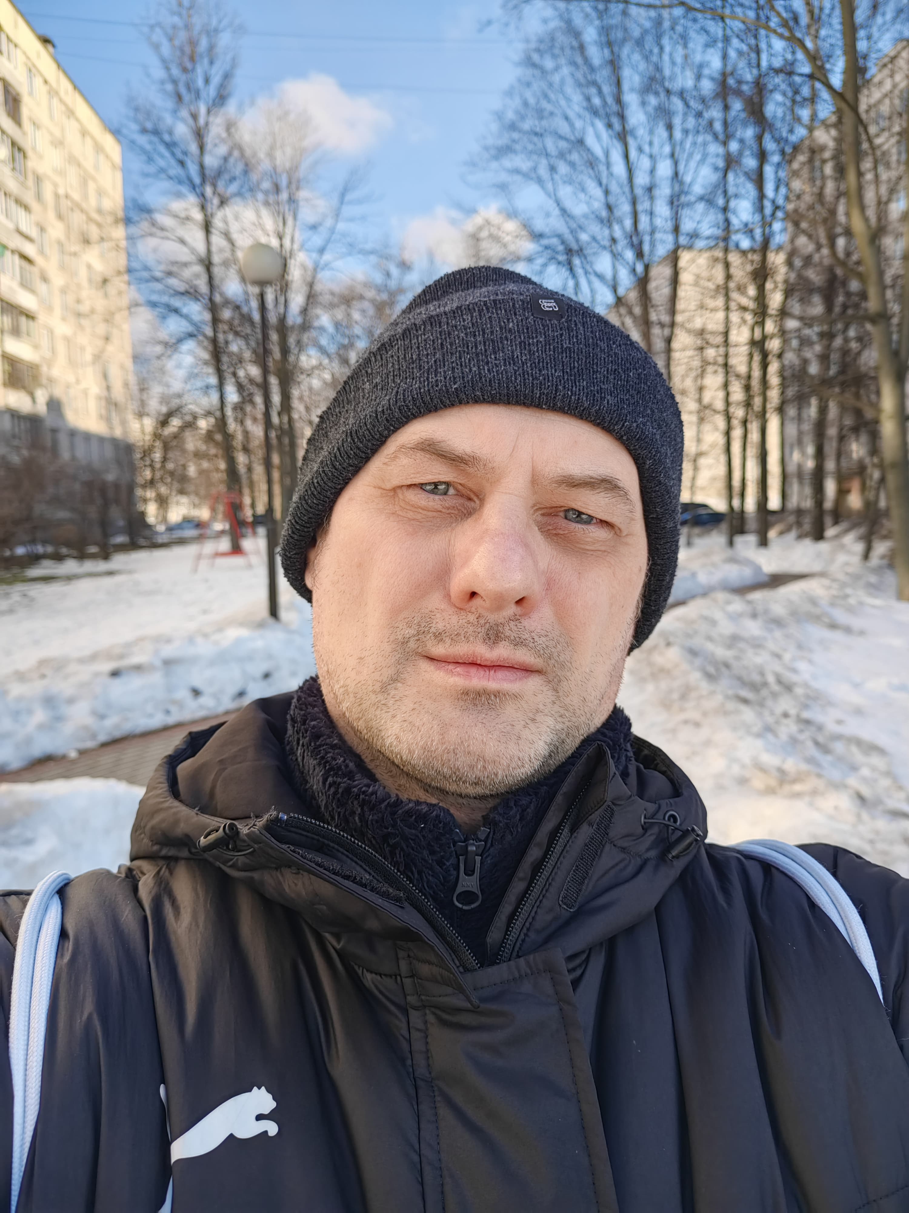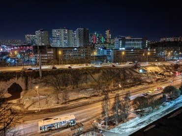 Смартфон умеет снимать видео максимально в 4К при 60 fps. На деле, правда, это иногда оказывается 58 кадров в секунду, а ночью — и до 54. Чтобы получить гарантированные 60 fps, придется переключиться в 1080р. Тем не менее, с видеосъемкой камера справляется превосходно: тут и очень высокий уровень детализации, и хорошая проработка контрастных частей даже при пасмурном зимнем освещении. К тому же, довольно хорошая гибридная стабилизация на основе работы гироскопа и цифровой компенсации (gyro-EIS) позволяет снимать с рук на ходу без видимых подрагиваний, если действовать аккуратно. Есть возможность более-менее плавного зумирования. Звук тоже записывается качественно.