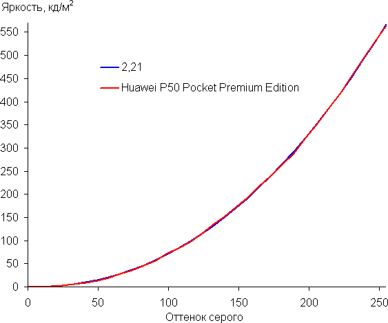 Напомним, что в случае OLED-экранов яркость фрагментов изображения динамично меняется в соответствии с характером выводимого изображения — чуть уменьшается для светлых в целом изображений. В итоге полученная зависимость яркости от оттенка (гамма-кривая), скорее всего, не соответствует гамма-кривой статичного изображения, так как измерения проводились при последовательном выводе оттенков серого почти на весь экран.