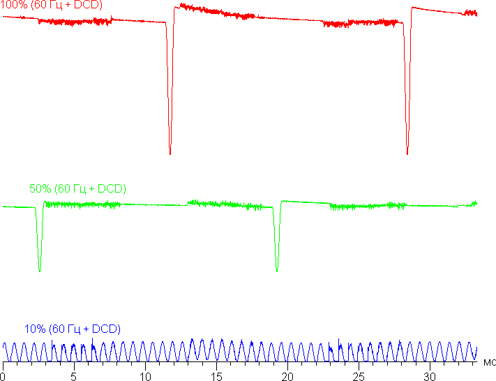 В англоязычной литературе и в новостях обычно используют название DC Dimming (на графиках сократим до DCD). Впрочем, при включении этой функции принципиальных изменений нет. Режим с частотой обновления 60 Гц: