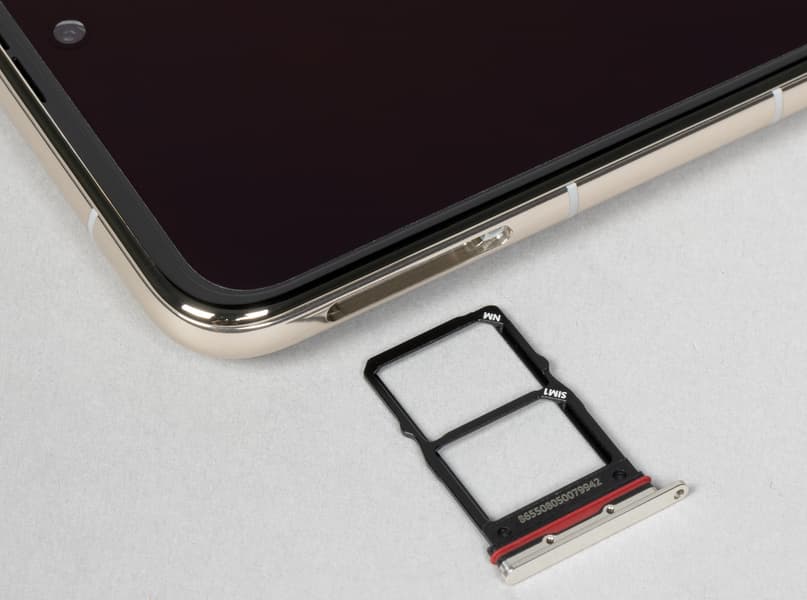 В разъем на боку можно одновременно установить лишь две карты Nano-SIM, место для карты памяти microSD не предусмотрено. Однако, по установившейся традиции, поддерживается замена одной из SIM-карт на карту памяти собственного довольно редкого формата Huawei NM (Nano Memory), благо по форме они в точности совпадают с Nano-SIM.