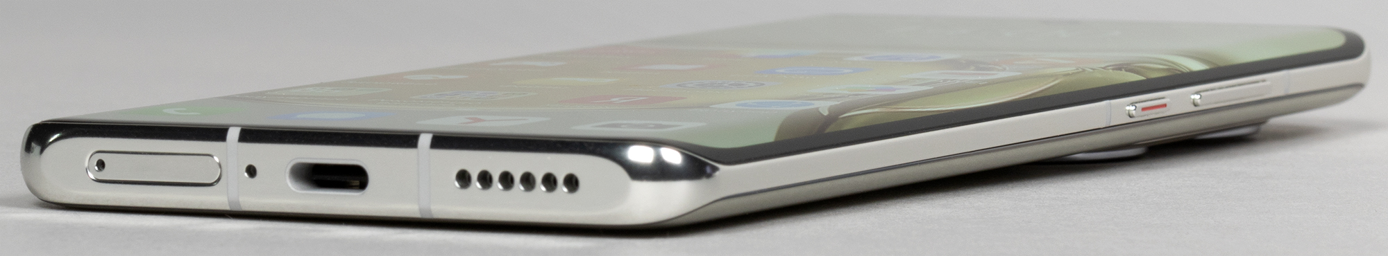 В разъем на нижнем торце можно установить две карты Nano-SIM, место для карты памяти microSD не предусмотрено, одну из SIM-карт можно поменять на карточку памяти формата Huawei NM — если вы сможете найти ее в продаже. Не предусмотрен и 3,5-миллиметровый аудиовыход для наушников.