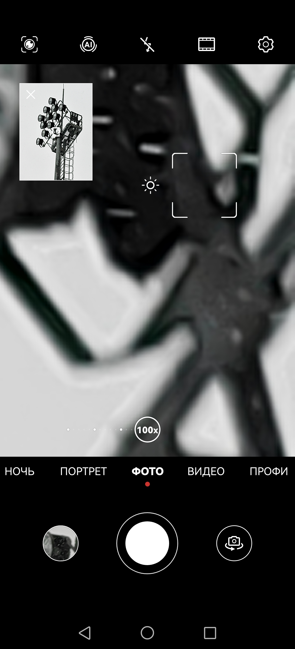 На длиннофокусный объектив перископического строения с оптическим стабилизатором, реализующий оптический зум 3,5×, камера переключается автоматически в хороших условиях освещения, а вот при плохом освещении она может вместо этого сделать кроп снимка на основную камеру. Собственно, это далеко но новость, так делают большинство флагманов других производителей. Насильно же заставить аппарат снимать именно на длиннофокусный объектив невозможно. Качество оптического зума получается действительно впечатляющее: все детали максимально различимы, а оптический стабилизатор вкупе с «окошком прицела» позволяют без проблем скадрировать фото.