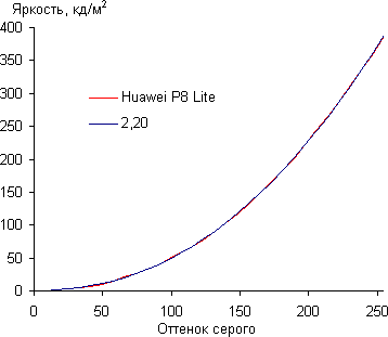 Контрастность (примерно в центре экрана) нормальная — порядка 870:1. Время отклика при переходе черный-белый-черный равно 21 мс (14 мс вкл. + 7 мс выкл.). Переход между полутонами серого 25% и 75% (по численному значению цвета) и обратно в сумме занимает 29 мс. Построенная по 32 точкам с равным интервалом по численному значению оттенка серого гамма-кривая не выявила завала ни в светах, ни в тенях. Показатель аппроксимирующей степенной функции равен 2,20, что равно стандартному значению 2,2. При этом реальная гамма-кривая почти не отклоняется от степенной зависимости: