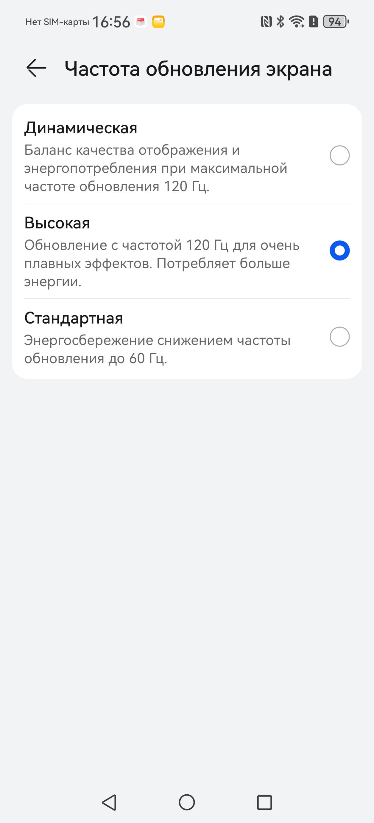 В настройках экрана можно включить режим с повышенной до 120 Гц частотой обновления: