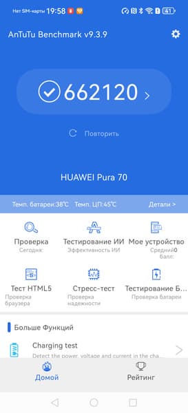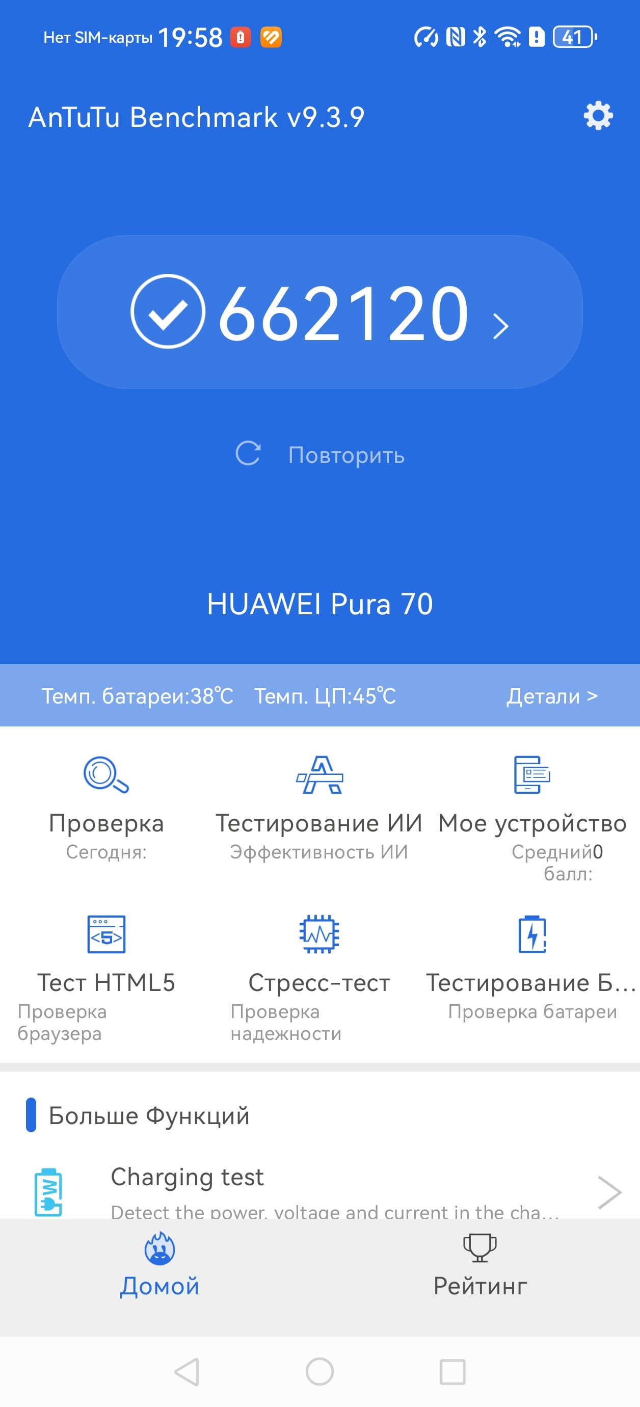 Смартфон Huawei Pura 70 получил батарею с объемом в 4900 мА·ч. Хорошо оптимизированная система, не самая мощная SoC и экран с немного меньшей площадью, чем у флагманов, помогают добиться очень высокой автономности. Аппарат в тестах продержался даже чуть больше своего старшего флагманского собрата, у которого экран больше. В целом, вся обновленная серия Huawei очень хороша в плане автономности.