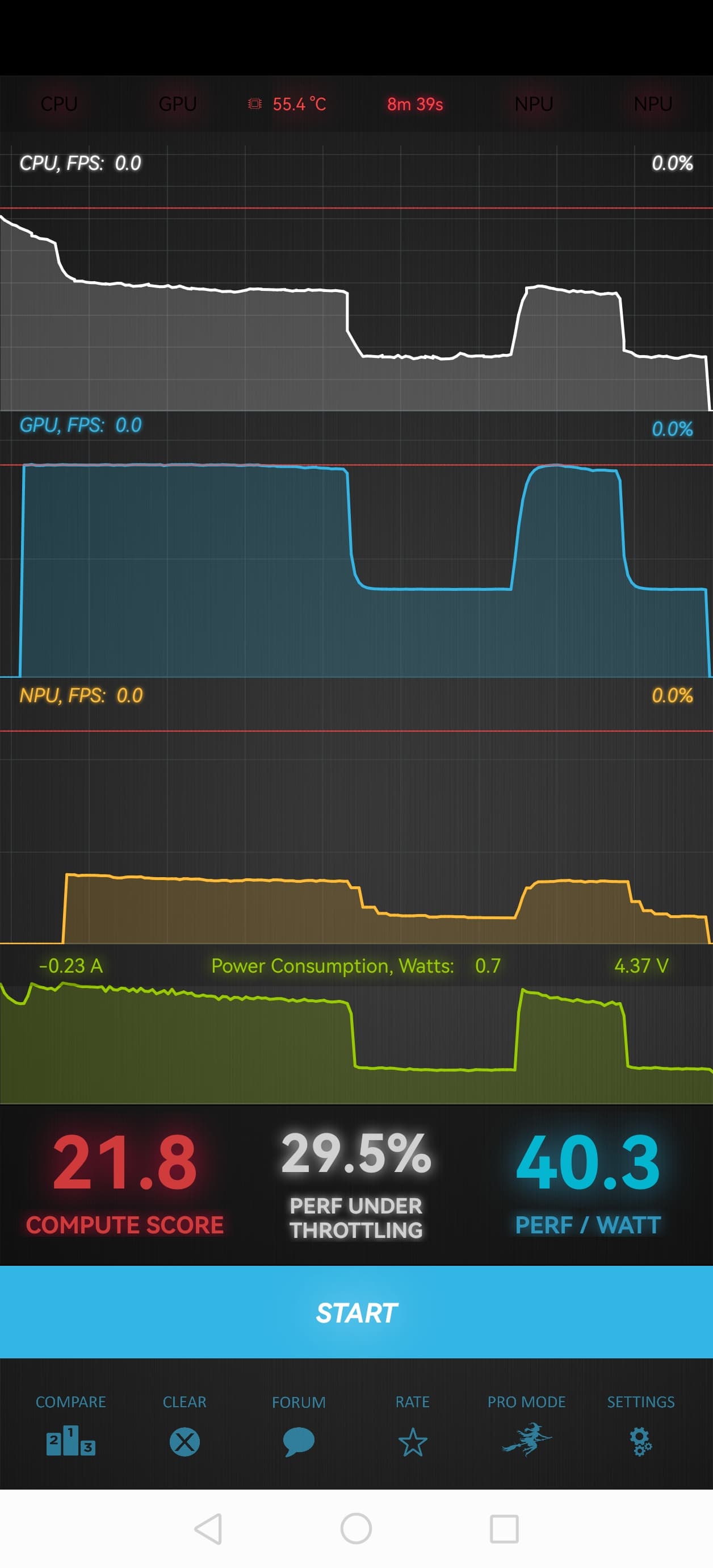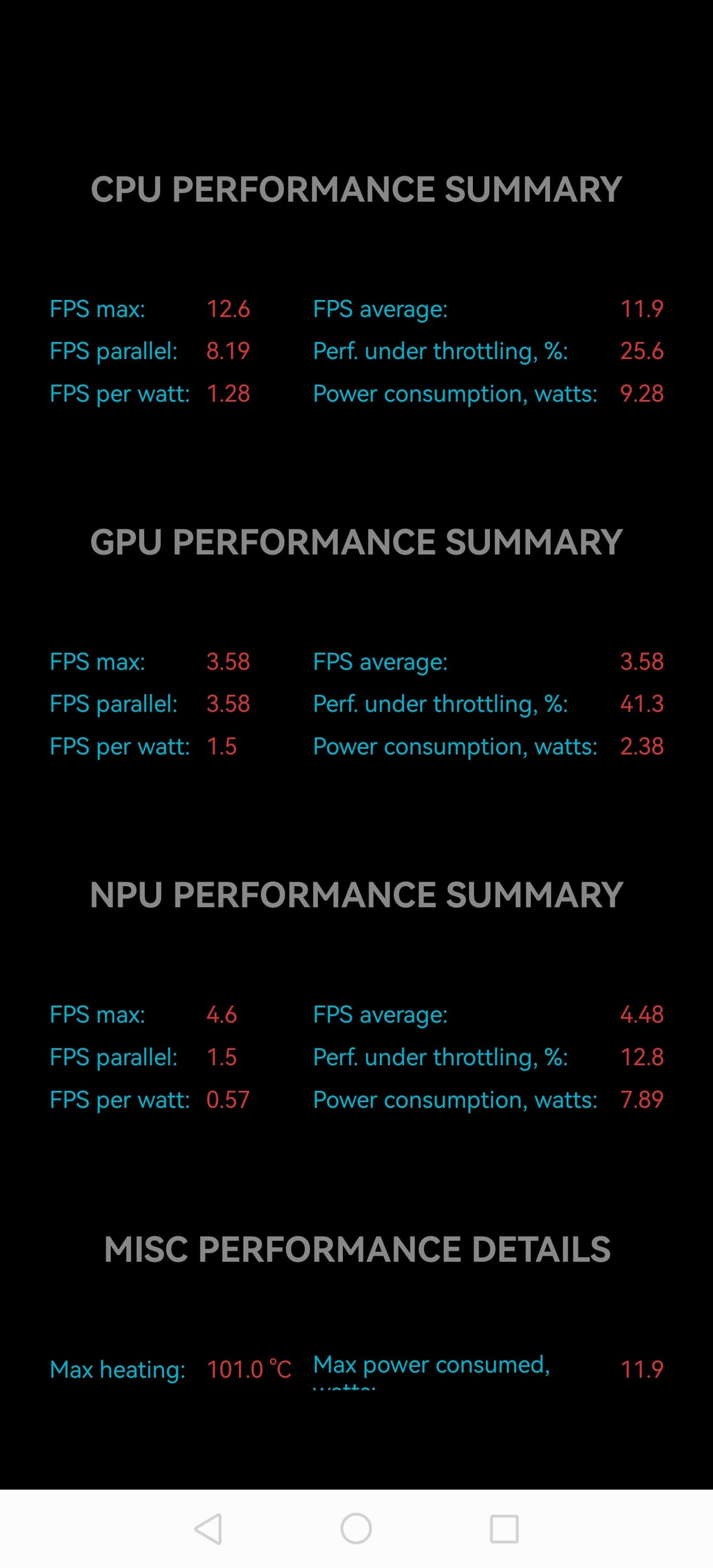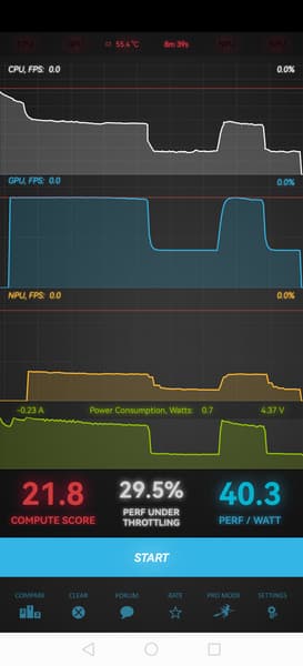 Тест на снижение производительности при нагреве мы проводим с помощью программы Burnout Benchmark, которая позволяет нагружать CPU, GPU и NPU: