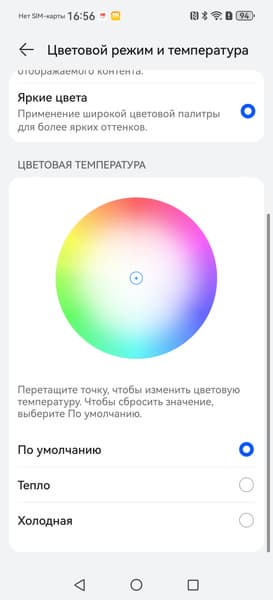 Фотография выше получена при активном профиле Обычные цвета в настройках экрана, всего их два: