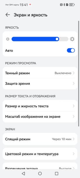 При выводе белого поля во весь экран и при ручном управлении яркостью ее максимальное значение составило 580 кд/м² в обычных условиях, а на очень ярком свету оно может повышаться до 1500 кд/м² (по крайней мере, на какое-то время и если смартфон не нагрелся). В режиме HDR — до 1200 кд/м². Максимальная яркость очень высокая. В данном случае чем меньше площадь белого на экране, тем он светлее, то есть фактическая максимальная яркость белых участков будет почти всегда выше указанных значений. В итоге, учитывая отличные антибликовые свойства, читаемость экрана днем на солнце должна быть на хорошем уровне. Минимальное значение яркости 1,3 кд/м², пониженный уровень яркости без проблем позволяет использовать устройство даже в полной темноте. Работает автоматическая регулировка яркости по датчику освещенности (он расположен под экраном в верхней части ближе к правому краю по горизонтали). Работа этой функции зависит от положения ползунка регулировки яркости: им пользователь может попытаться выставить желаемый уровень яркости в текущих условиях. Если оставить все по умолчанию, то в полной темноте функция автояркости уменьшает яркость до 4 кд/м² (очень темно), в условиях освещенного искусственным светом офиса (примерно 550 лк) устанавливает на 130 кд/м² (нормально), в очень ярком окружении (условно соответствует нахождению на прямом солнечном свету) повышает до 1000 кд/м² (достаточно). Результат нас не совсем устроил, поэтому мы в полной темноте чуть увеличили яркость, получив для трех условий, указанных выше, следующие значения: 13, 130 и 1000 кд/м² (что и было нужно). Получается, что функция автоподстройки яркости работает адекватно и в какой-то степени позволяет пользователю настраивать свою работу под индивидуальные требования.