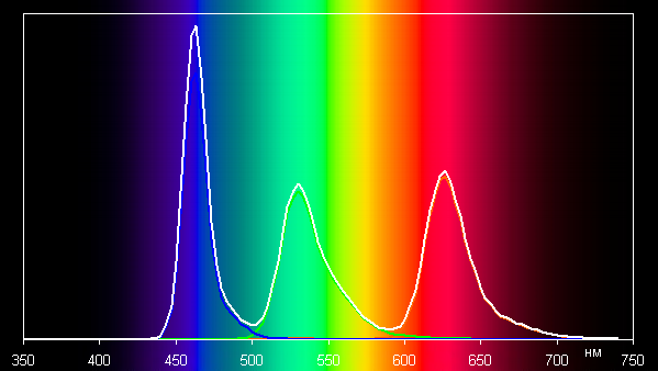 Видно, что в этом случае перекрестного подмешивания компонент нет, то есть родное для экрана цветовое пространство близко к Display P3.