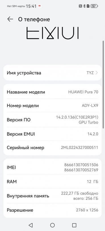 Основные характеристики Huawei Pura 70 (модель ADY-LX9)