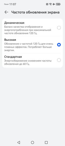 В настройках экрана можно включить режим с повышенной до 120 Гц частотой обновления: