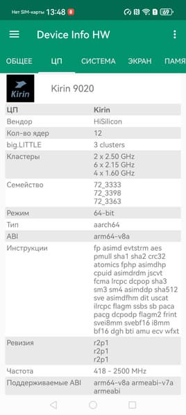 HiSilicon Kirin 9020 — восьмиядерная SoC, которая была анонсирована 26 ноября 2024 года и изготовляется по 7-нанометровому техпроцессу. Платформа не флагманская, но достаточно мощная — мощнее средних на сегодня решений. Ее показатель в тесте AnTuTu — около 1,1 млн баллов.