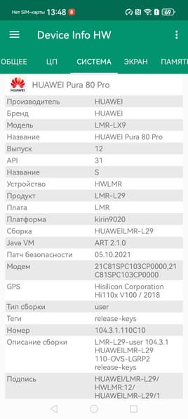 Основные характеристики Huawei Pura 80 Pro (модель LMR-LX9)