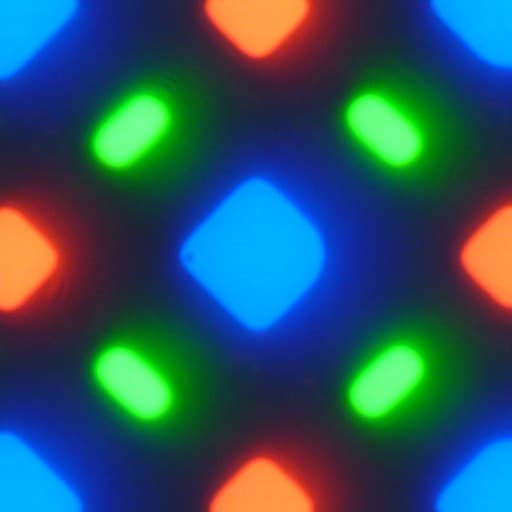 На фрагменте выше можно насчитать 4 зеленых субпикселя, 2 красных (4 половинки) и 2 синих (1 целый и 4 четвертушки), при этом, повторяя эти фрагменты, можно выложить весь экран без разрывов и перехлеста. Для таких матриц компания Samsung ввела наименование PenTile RGBG. Разрешение экрана производитель считает по зеленым субпикселям, по двум другим оно будет ниже. Разумеется, присутствуют некоторая неровность контрастных границ и другие артефакты. Впрочем, из-за высокого разрешения они лишь минимально сказываются на качестве изображения.