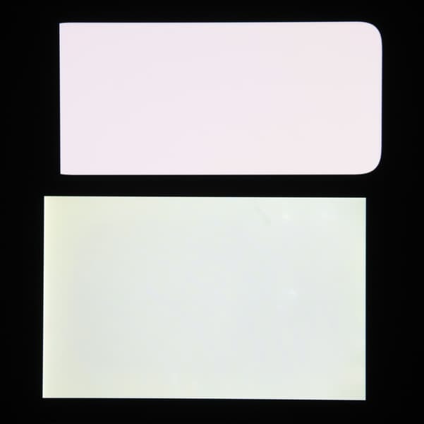Экран характеризуется великолепными углами обзора. Яркость под углом у обоих экранов заметно уменьшается (если сравнивать с Nexus 7), но в случае смартфона падение яркости выражено гораздо меньше. В итоге, даже если установить формально одинаковую яркость, то экран этого смартфона визуально выглядит гораздо более ярким (в сравнении с ЖК-экранами), так как на экран мобильного устройства часто приходится смотреть как минимум под небольшим углом. Правда, у смартфона белый цвет при отклонении на очень большие углы приобретает легкий сине-зеленый оттенок, но черный цвет остается просто черным под любыми углами. Он настолько черный, что параметр контрастности в данном случае неприменим. Для сравнения приведем фотографии, на которых на экраны смартфона и второго участника сравнения выведены одинаковые изображения, при этом яркость экранов изначально установлена примерно на 200 кд/м², а цветовой баланс на фотоаппарате принудительно переключен на 6500 К.