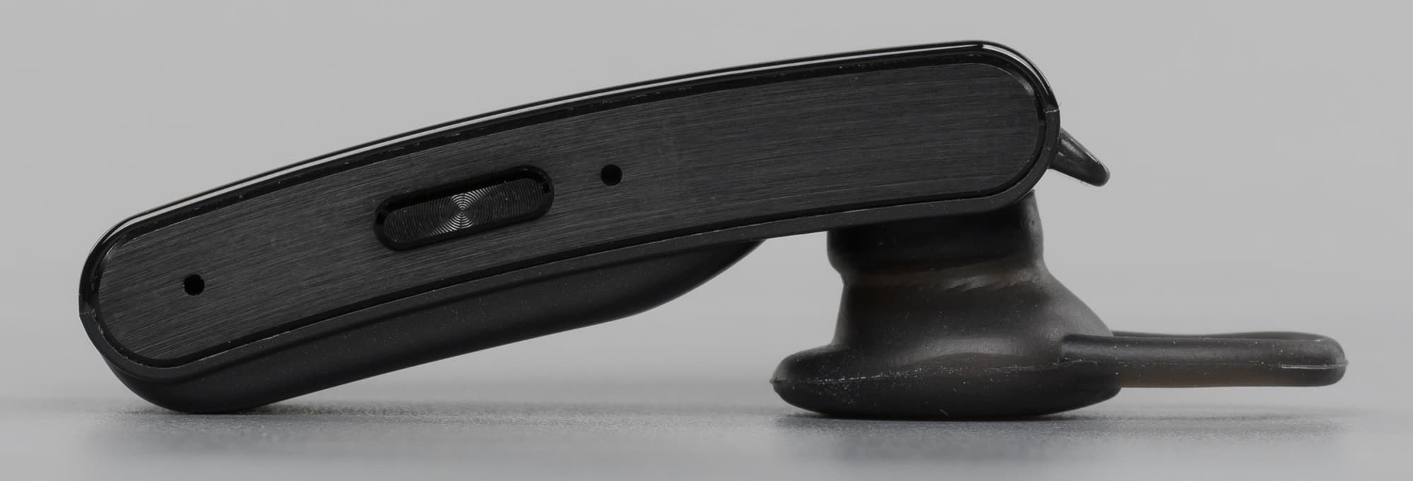 Но — вернемся к описанию дизайна. Над и под вытянутой боковой кнопкой можно заметить отверстия встроенных микрофонов. Предполагается, что наличие двух микрофонов должно улучшить качество передачи голоса, но все же оно остается хуже, чем при обычном разговоре по смартфону. Это традиционная беда Bluetooth-гарнитур.