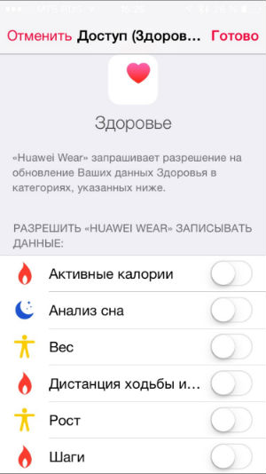 После удачного подсоединения приложение предлагает провести первоначальную настройку: ввести свой рост-вес-возраст, во-вторых, указать цели по количеству шагов или сброшенных калорий в день, в-третьих, разрешить или запретить обмен данными с Apple Health.