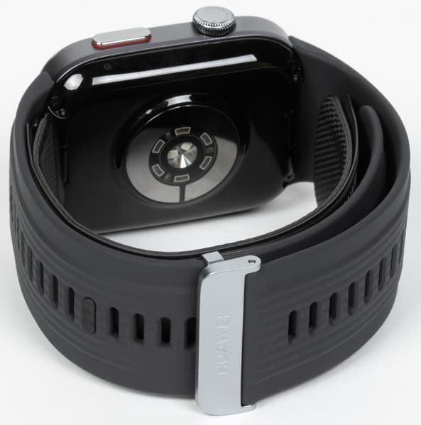 Вторая кнопка, имеющая продолговатую форму — программируемая. По умолчанию она запускает измерение давления (тогда как на других часах Huawei — тренировки), но можно перепрограммировать ее на другие задачи. Есть у этой кнопки и еще одна важная функция: к ней надо прикладывать палец для измерения ЭКГ.