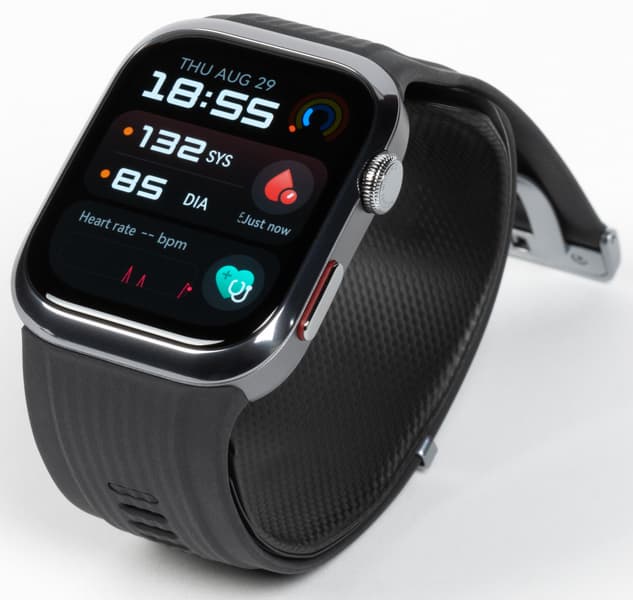 Собственно, если не знать, что это не обычные умные часы, а, фактически, серьезное медицинское устройство (пусть даже официально оно так не позиционируется), то по внешнему виду ни за что не догадаешься. Корпус не слишком толстый — вполне на уровне обычных моделей.