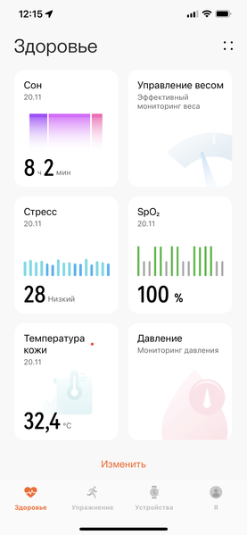 Впрочем, все наши замечания к работе этих функций — идентичны Huawei Watch 3. Температурный датчик работает без какой-либо поправки и показывает значения на несколько градусов ниже реальных (на скриншоте выше можно это увидеть), есть сомнения и в точности измерения кислорода в крови, хотя в целом результаты куда более правдоподобные.