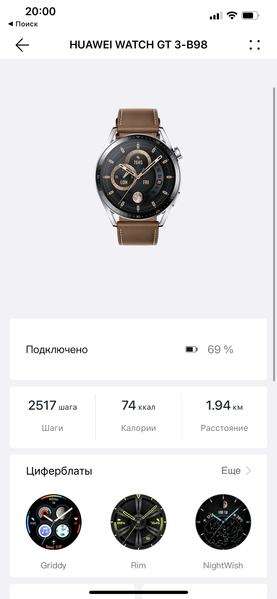 Подсоединение часов к смартфону осуществляется проще на Android и сложнее на iOS. Правда, во всех случаях придется обновить приложение Huawei Здоровье до новейшей версии, чтобы там появилась модель Watch GT 3. А дальше надо выбрать на часах язык и появившийся после этого QR-код просканировать смартфоном из приложения Huawei Здоровье. На Android сразу начнется подключение к часам, на iOS же потребуется зайти в Настройки смартфона, там открыть Bluetooth, дождаться обнаружения, нажать на сопряжение, после чего вернуться в приложение Huawei Здоровье и продолжить уже там. Когда процесс будет завершен, вы увидите изображение часов и основные сведения о них.