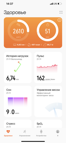 Впрочем, повторимся, даже несмотря на эти сбои, уведомление продолжали приходить стабильно, а все данные — фиксировались, и потом, при синхронизации со смартфоном, сгружались туда.