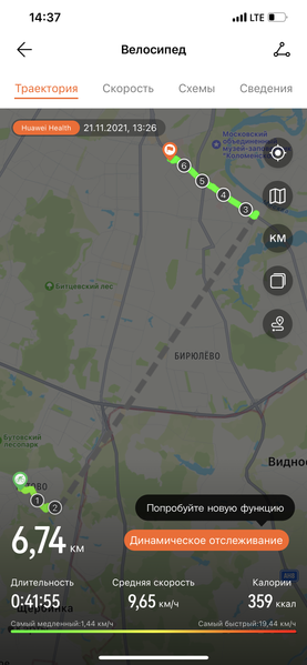 Работа в режиме тренировок — опять-таки не отличается от Huawei Watch 3. Мы это проверили на велопоездке.