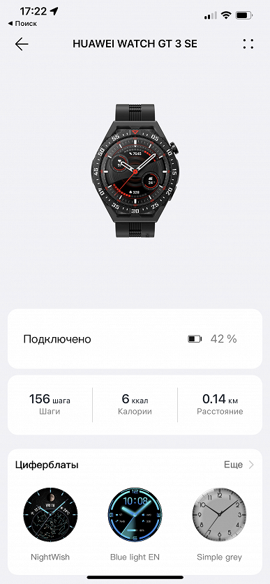Напомним, что, как и другие актуальные модели часов Huawei, Watch GT 3 SE работает на базе HarmonyOS — полнофункциональной операционной системы, позволяющей устанавливать на часы сторонние приложения из магазина AppGallery (он, правда, недоступен на iOS). На момент тестирования актуальной версией ОС была 3.0.0.57.