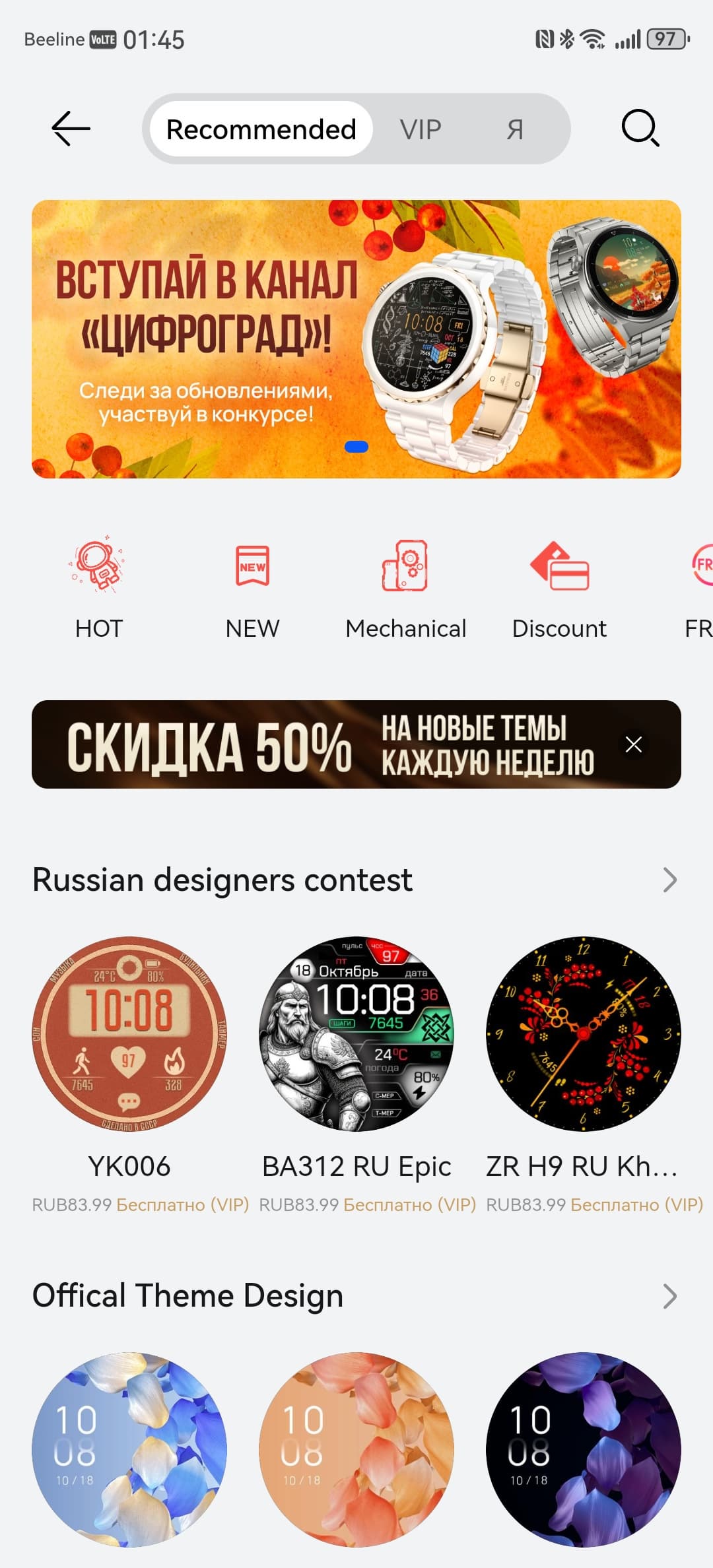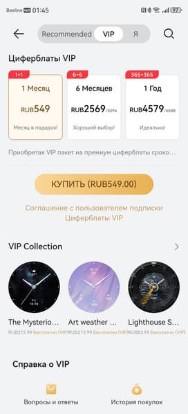 И последнее: пользователю вне зависимости от платформы доступно множество циферблатов, и хотя часть из них бесплатна, ряд других — так называемых VIP — придется покупать за деньги. Предлагается оформить подписку на месяц, полгода или год, причем длительность по факту удваивается, то есть в реальности вы получите два месяца, год или два года. Стоит ли это удовольствие суммы от 549 до 4579 рублей — вопрос риторический.