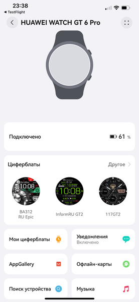Еще из интересного: возможность установки сторонних приложений на часы появилась даже в случае с iPhone, но ассортимент ПО заметно отличается. На момент тестирования при подсоединении к смартфону Huawei было доступно 43 приложения, а к iPhone — всего 12. То есть, формально, сторонние приложения теперь доступны на всех платформах, фактически же часы по-прежнему больше «любят» родную экосистему.