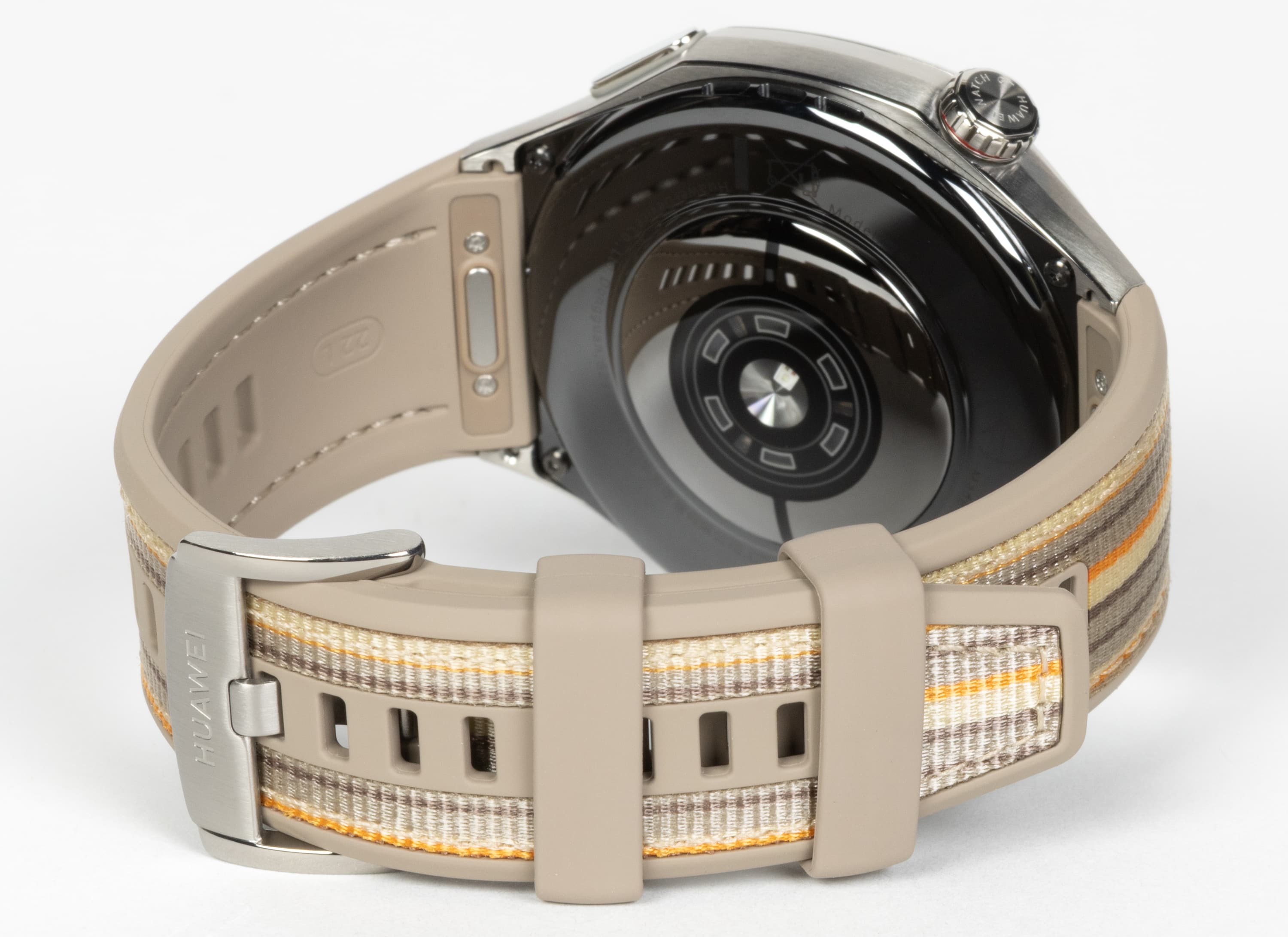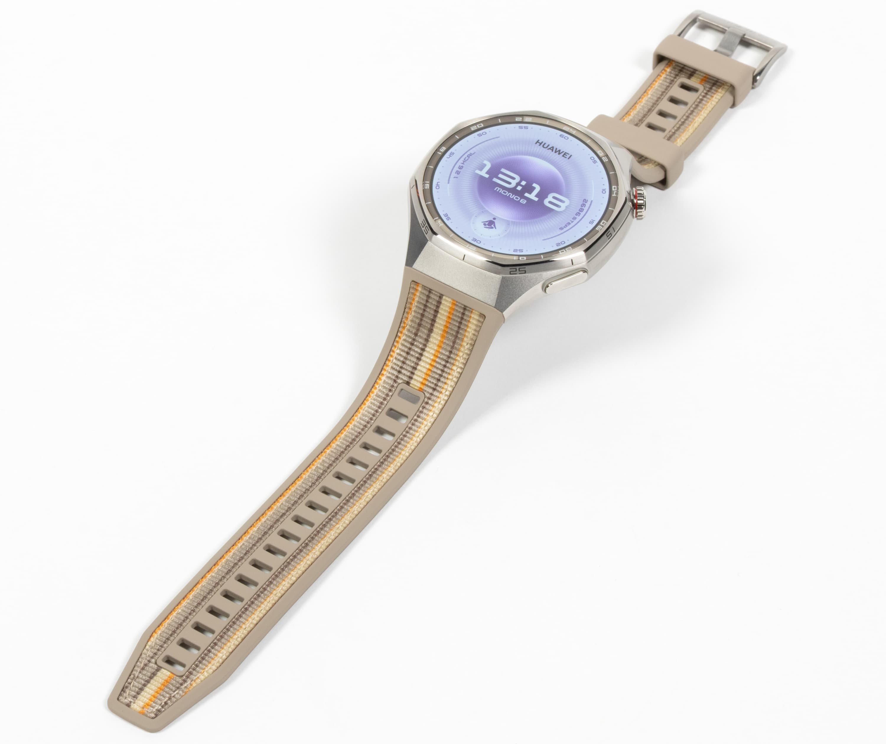 Однако у той версии часов, которую мы тестировали, ремешок выглядел интересно и привлекательно: его основа — силиконовая (если быть точным, это фторэластомер), а вставка внутри — из нейлоновых нитей разных цветов (оранжевого, светло-бежевого, серого, темно-коричневого). Получается вариант, идеальный для спорта и в то же время не слишком примитивный, но запоминающийся и отлично сочетающийся с одеждой в стиле casual.