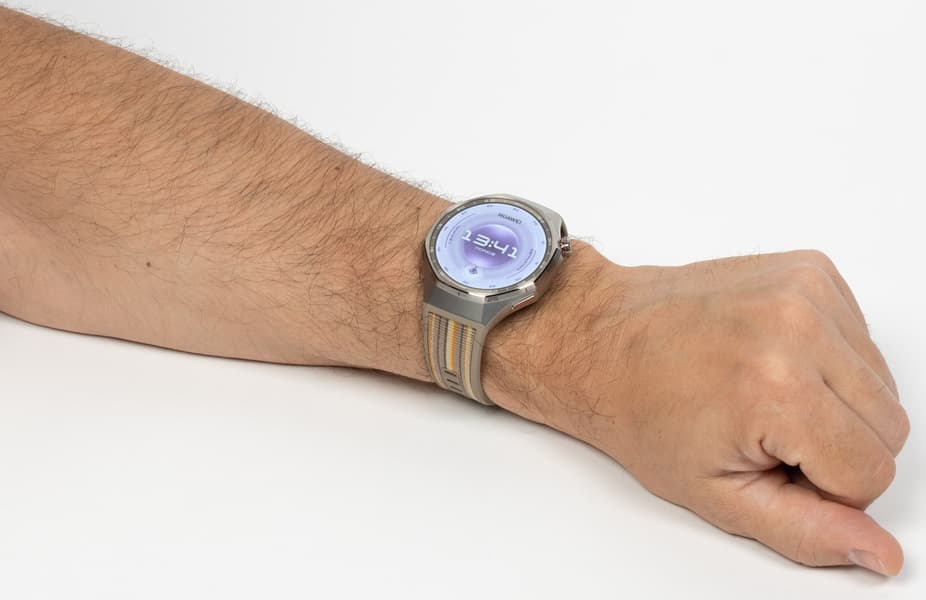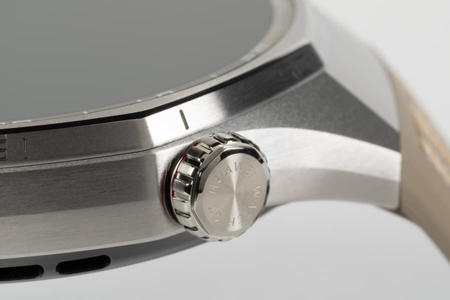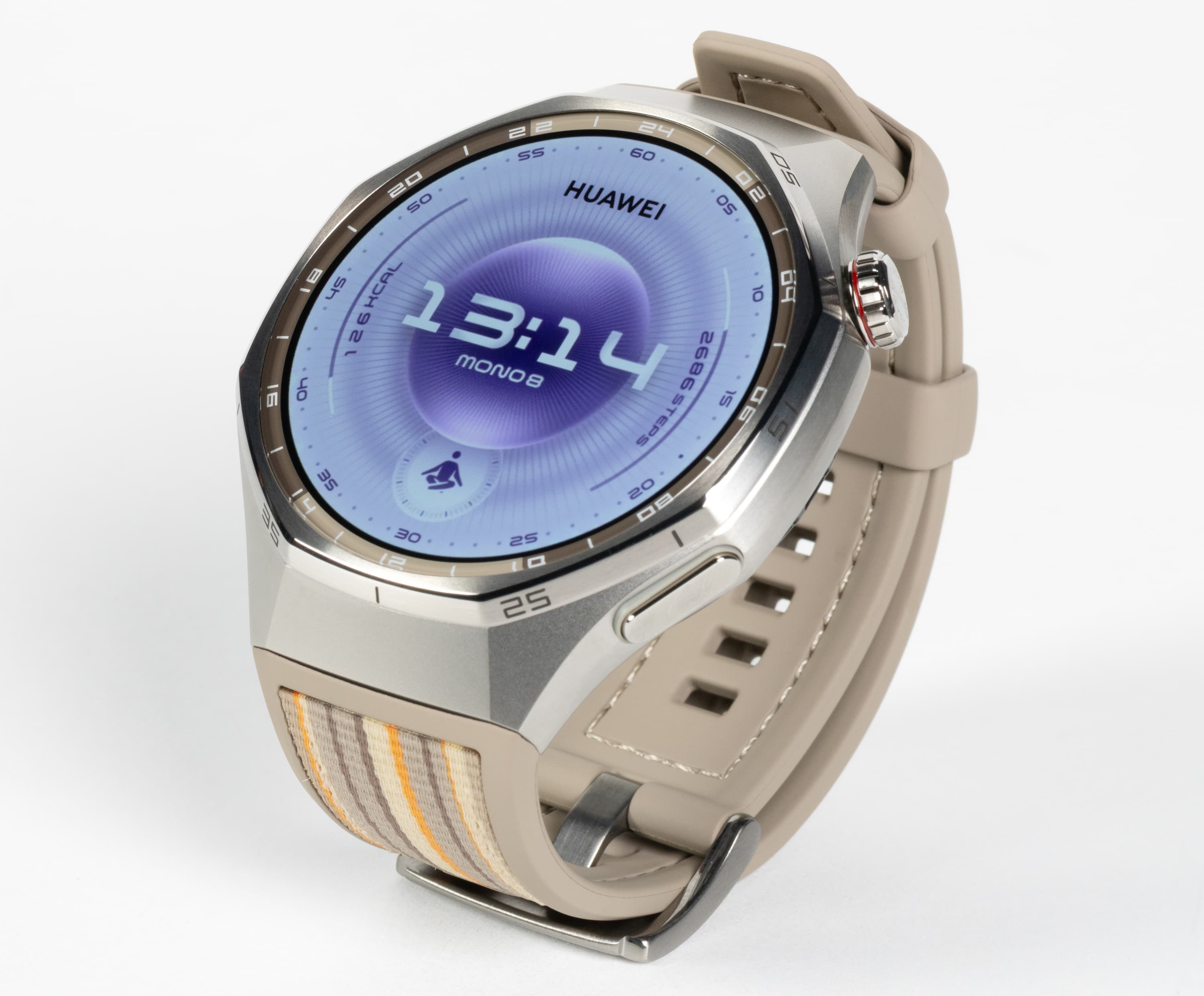 По внешнему виду устройство не сильно отличается от Watch GT 5 Pro: как и прежде, мы видим безель в форме восьмигранника, кнопку-колесико справа вверху и прямоугольную вспомогательную — справа внизу. Но есть и изменения, призванные сделать облик часов еще более выразительным.