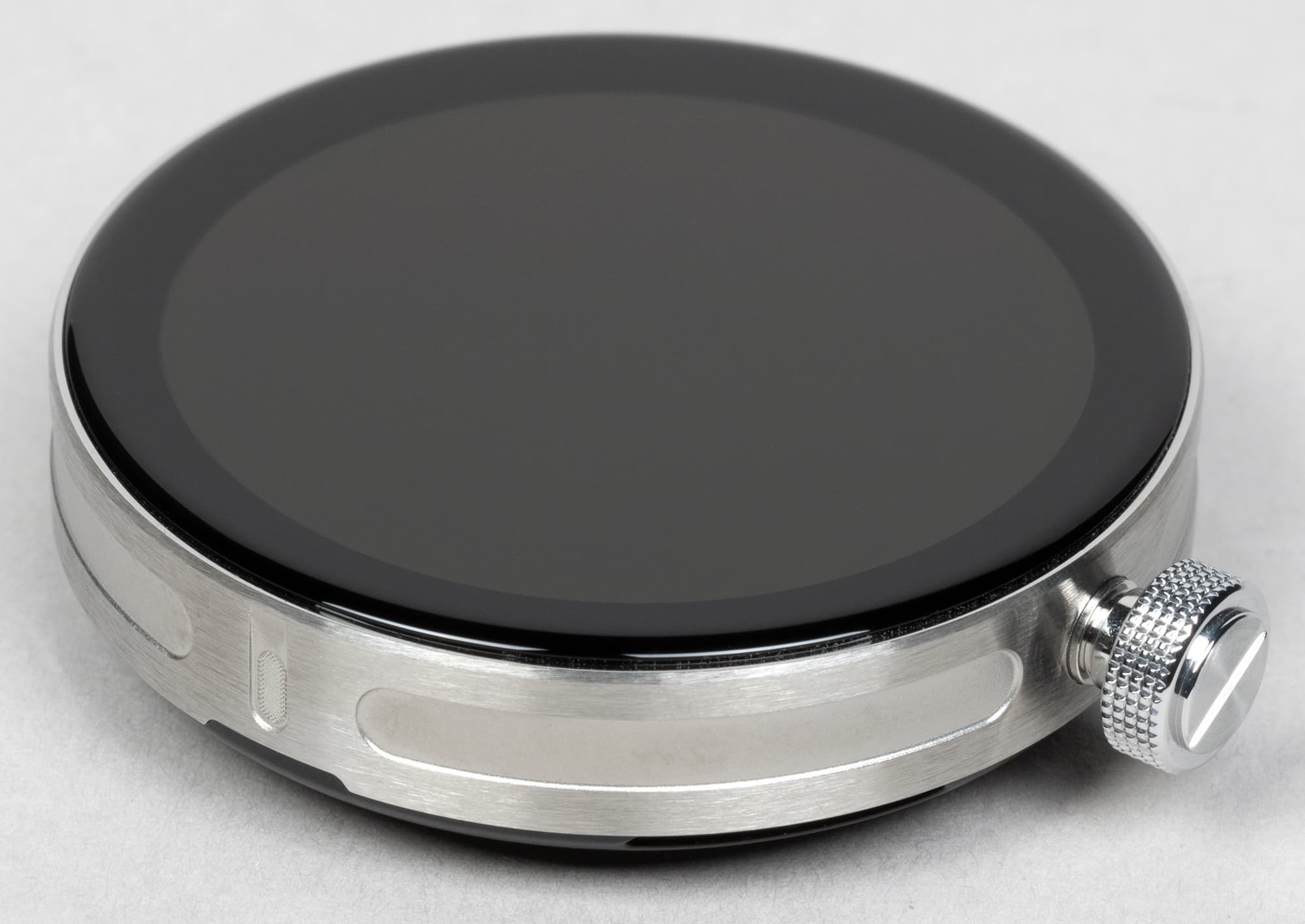 Экран утоплен глубоко внутрь, и это работает на общий стиль, а заодно оказывается логичным конструктивным решением в контексте общего форм-фактора. Проще говоря, вряд ли круглый корпус мог бы прочно и надежно держаться внутри кейса, если бы не упирался в безель с внутренней стороны.