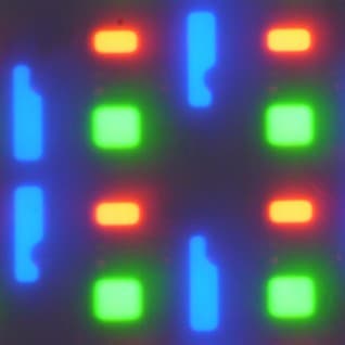 В этом экране используется OLED-матрица — активная матрица на органических светодиодах. Полноцветное изображение создается с помощью субпикселей трех цветов — красного (R), зеленого (G) и синего (B) в равном количестве, что подтверждается фрагментом микрофотографии: