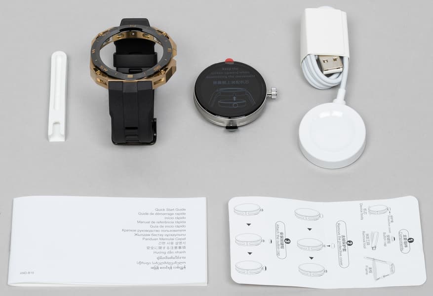 Как именно это делать — показано в графической форме на отдельной листовке, которая приложена в дополнение к обычному руководству пользователя. Что же касается зарядного устройства, оно идентично другим моделям семейства Watch GT 3.