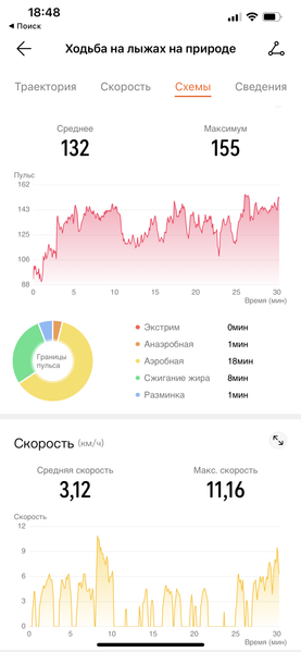 Мы специально проверили, но и в настройках часов, и в настройках мобильного приложения не было установлено предупреждений о превышении пульса, по крайней мере, на таком смешном уровне. Тем временем, заниматься было совершенно невозможно, поскольку каждые пару минут часы оглашали лес, где мы катались, воплями в духе «шеф, все пропало». Как это отключить — непонятно. В конце концов, мы просто завершили тренировку на часах и продолжили маршрут. А дальше — самое интересное. Казалось бы, если часы считают, что пользователь не тренируется (тренировка не запущена), но при этом у него почему-то пульс 130-150 довольно продолжительное время, почему же они не сигнализируют? То есть во время тренировки, когда такой пульс как раз нормальный и правильный, часы возмущаются, а в обычной жизни, для которой это действительно перебор, — нет.