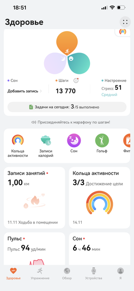 Чтобы получить самую последнюю сборку, придется несколько раз обновиться, и процесс это небыстрый (даже при подключении к Wi-Fi 6, полностью заряженных часах и смартфоне, лежащем рядом). Сложно сказать, что дает HarmonyOS 6 именно для носимых устройств. Производитель утверждает, что в целом она обеспечивает более быстрый запуск приложений (на 11%), а загрузка контента должна ускориться на 30%. Обещан также рост автономности.