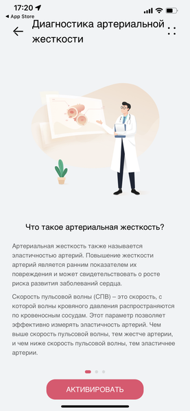 Еще одна возможность — диагностика артериальной жесткости. Это анализ эластичности (податливости) сосудов с помощью измерения скорости пульсовой волны. Правда, ранее мы уже встречались с измерением пульсовой волны, и здесь оно тоже представлено, но, видимо, производитель решил дополнить интерпретацию результатов еще одним параметром. Если раньше идея была только в том, чтобы выявлять аритмию (см. обзор Huawei Watch GT Cyber), теперь результатом становится еще и оценка жесткости артерий.