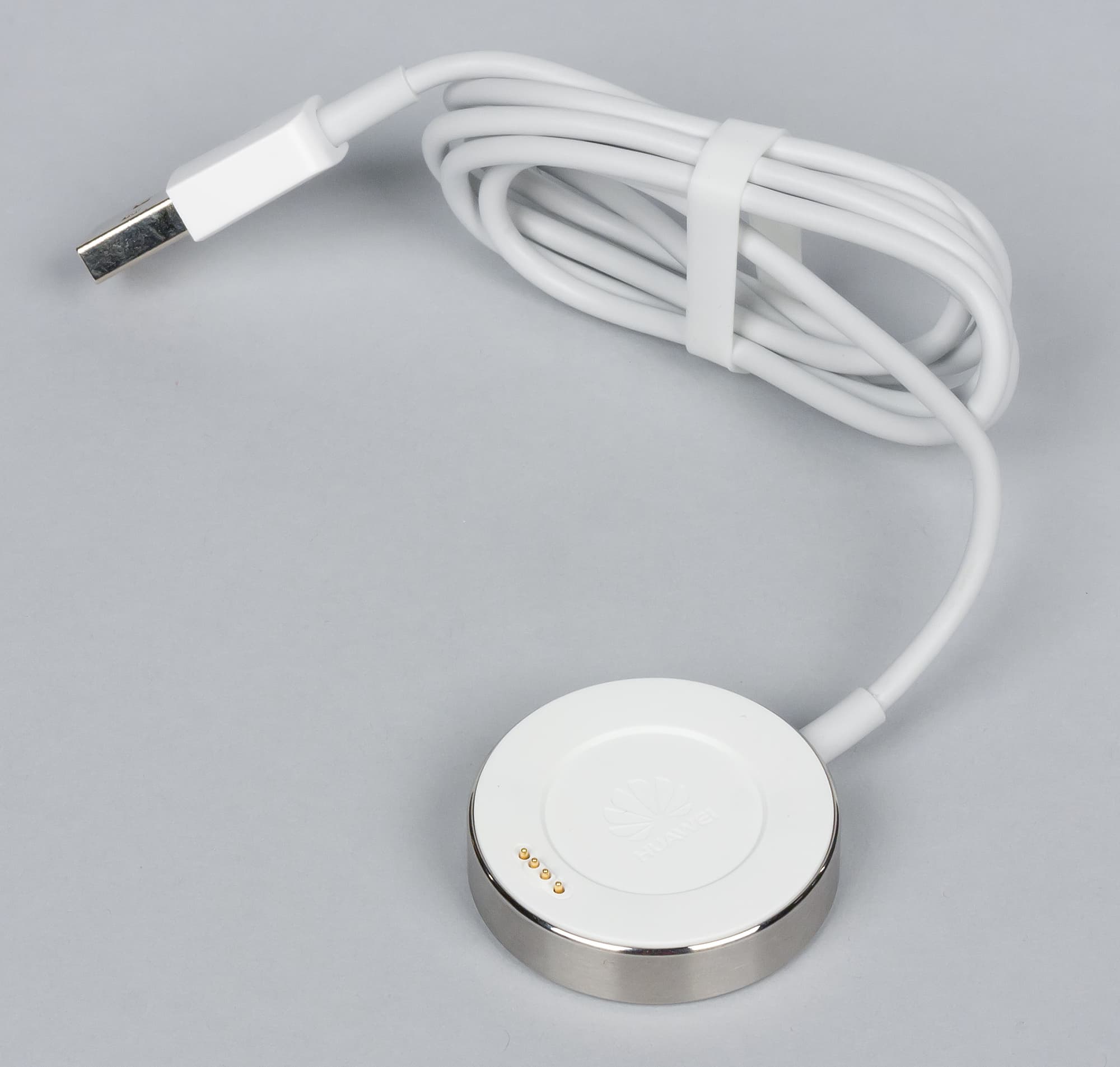 Оно представляет собой круглую платформу под размер корпуса часов, на которой размещены четыре контакта. Платформа магнитная, поэтому достаточно поднести часы к ней задней стороной — и они примагнитятся таким образом, чтобы контакты совместились.