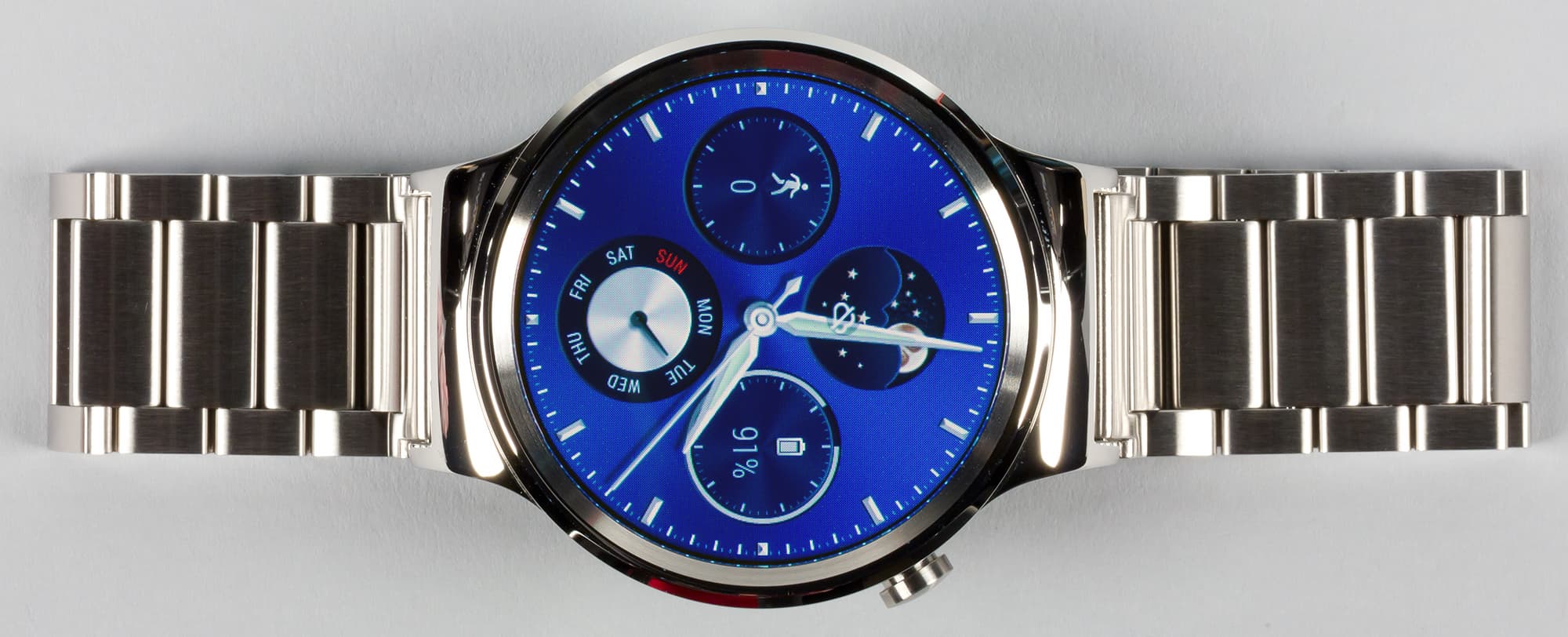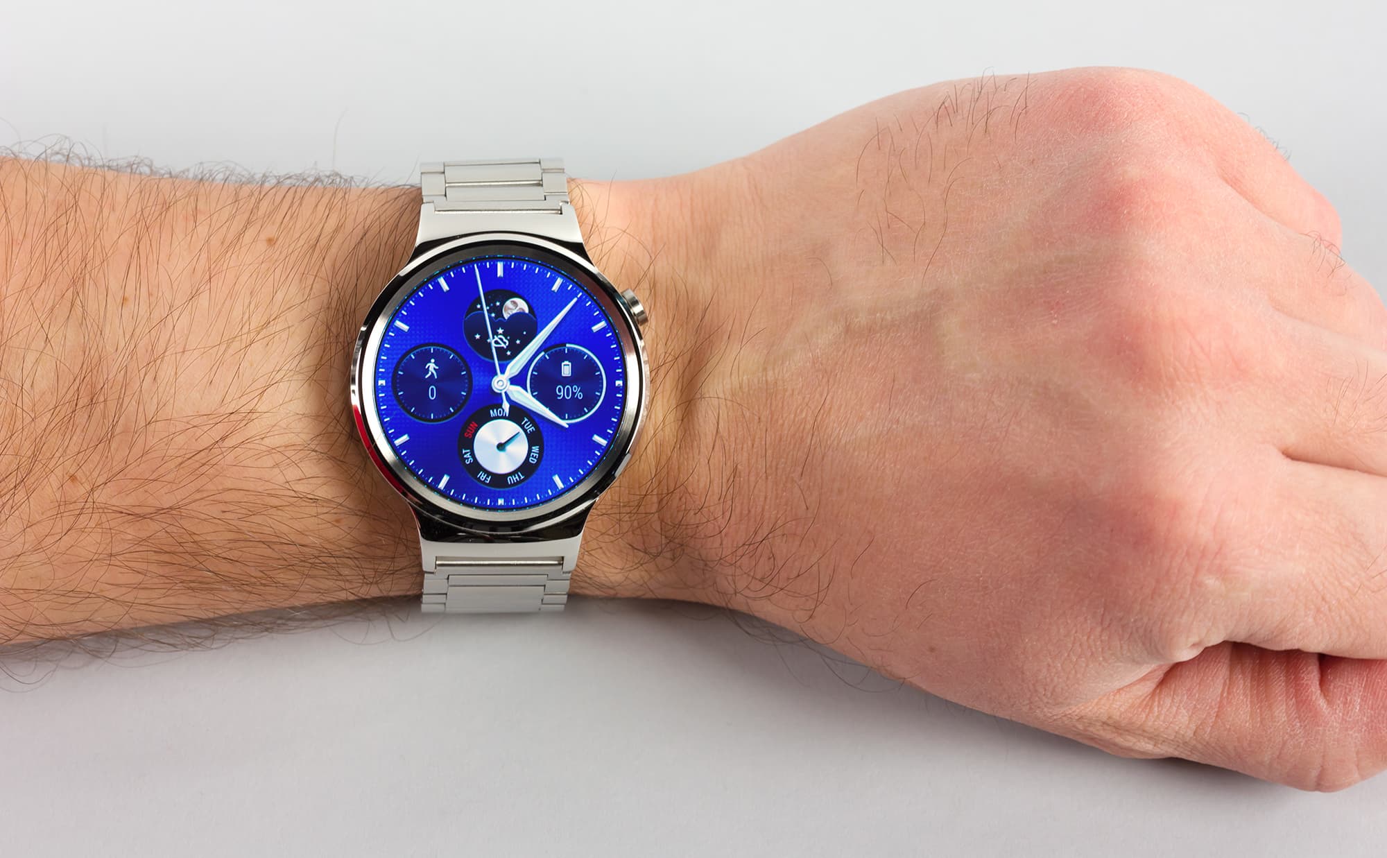 Говорить об эргономике Huawei Watch не имеет смысла: если вам кажется удобным металлический браслет, то и здесь не будет никаких проблем. Если нет — то ответ очевиден. Это дело вкуса. И от классических часов дизайн браслета и корпуса Huawei Watch мало чем отличается. Однако перед покупкой стоит учесть, что вариантов с силиконовыми ремешками здесь нет, поэтому заниматься спортом в этих часах будет проблематично (да и вряд ли захочется, учитывая массу и толщину корпуса).