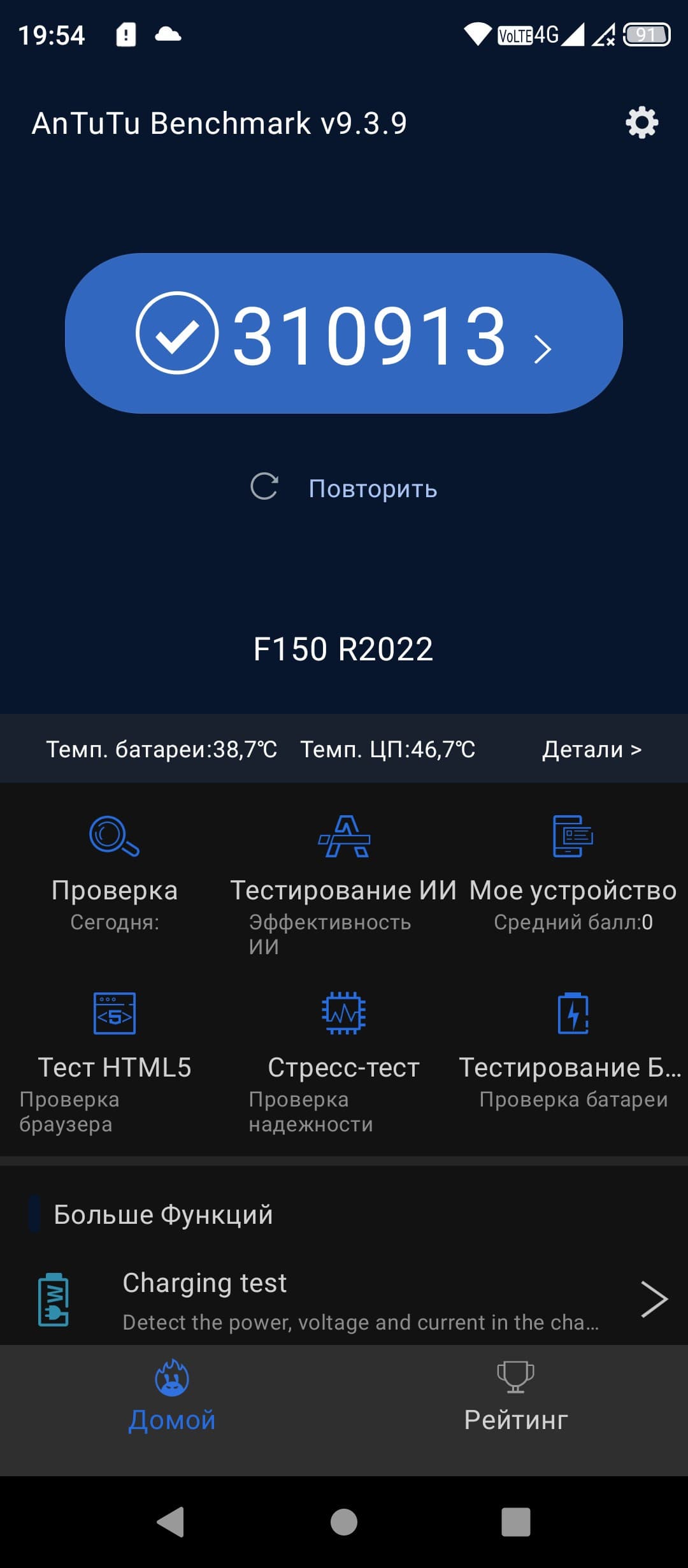 | AnTuTu (v9.x) (больше — лучше) | 310913 | 316939 | 208049 | 353105 | 344282 |