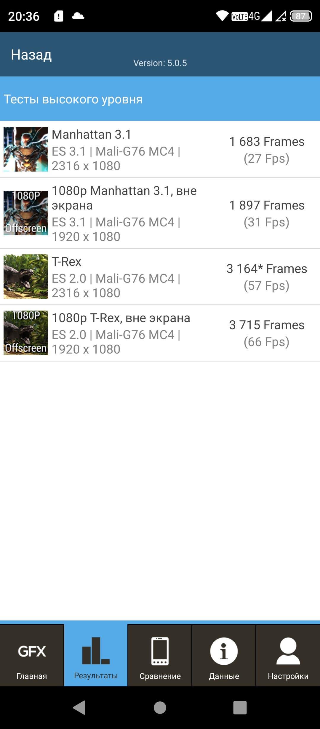| GFXBenchmark T-Rex (1080p Offscreen, fps) | 66 | 61 | 44 | 92 | 87 |