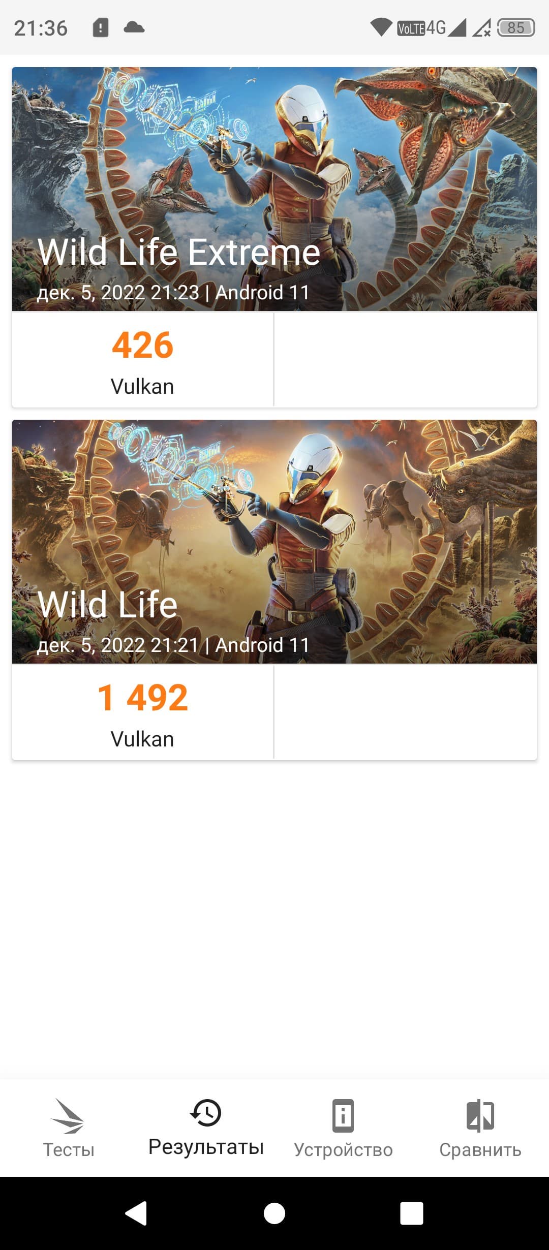 | 3DMark Wild Life Vulkan (больше — лучше) | 1492 | 1095 | 734 | 1118 | 1054 |