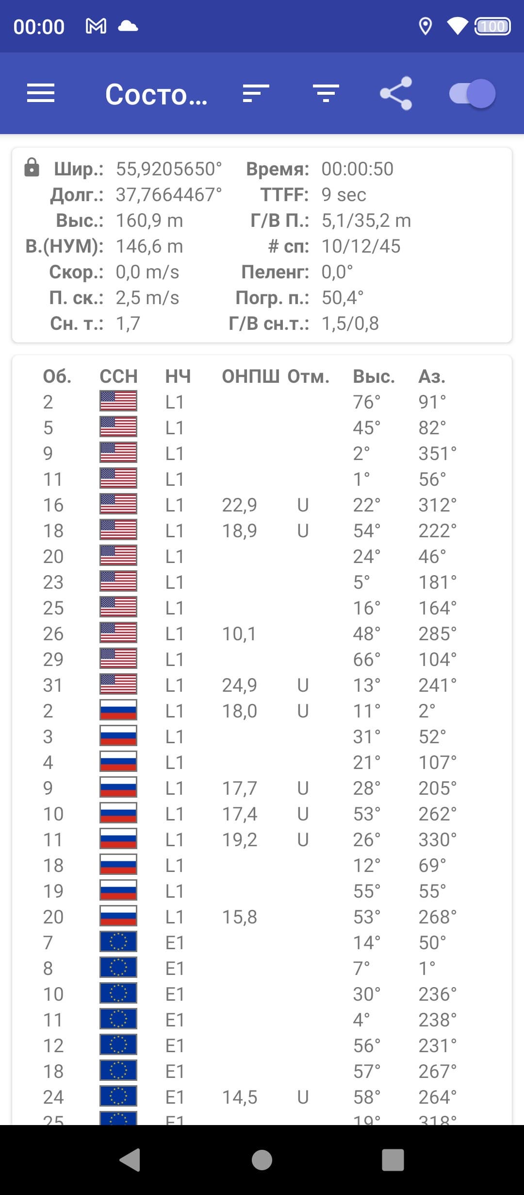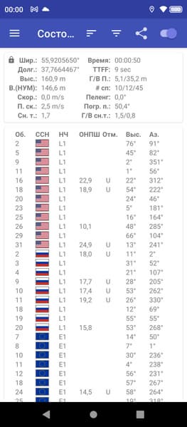 Навигационный модуль работает с GPS (с A-GPS), Глонасс, Galileo и BDS. Первые спутники при холодном старте обнаруживаются быстро, точность позиционирования не вызывает претензий. Среди встроенных датчиков нашлись магнитный компас и даже гироскоп.