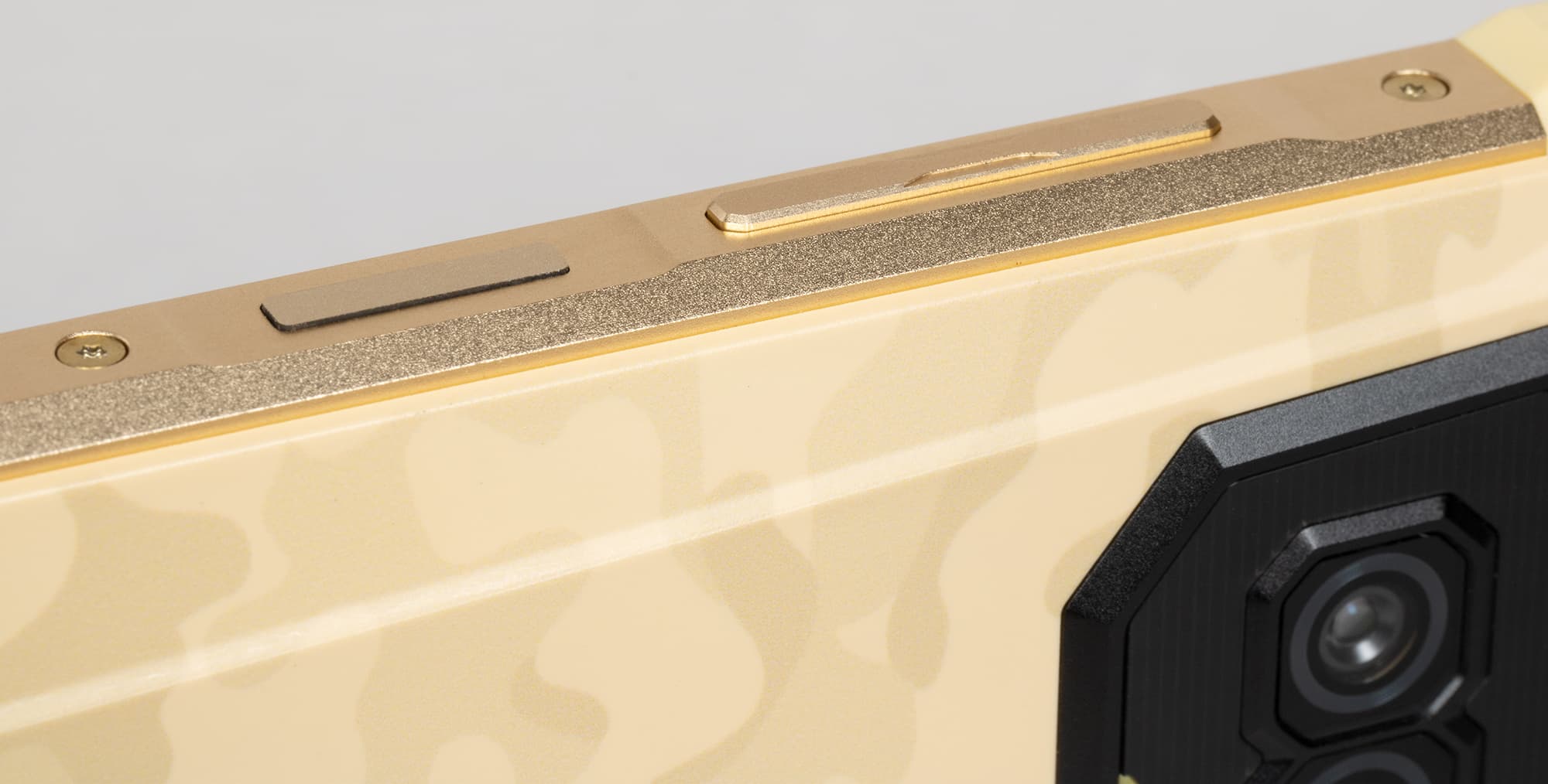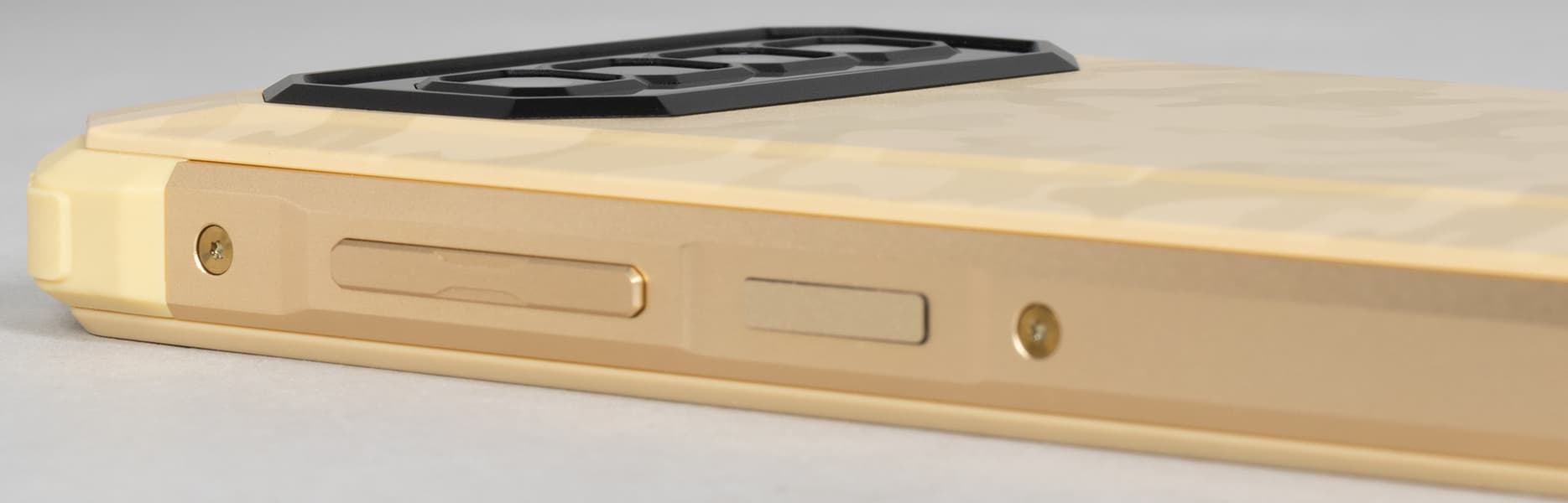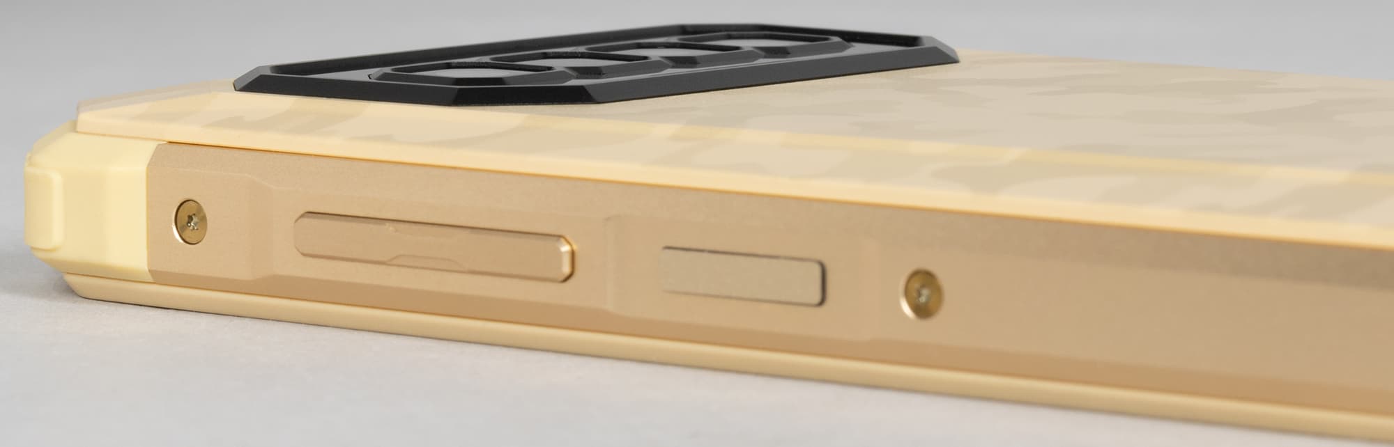 Корпус смартфона выполнен в дизайне с сильно скошенными угловыми частями и массой разнообразных фигурных элементов, ломаных линий и резких переходов, делающих весь образ максимально брутальным.