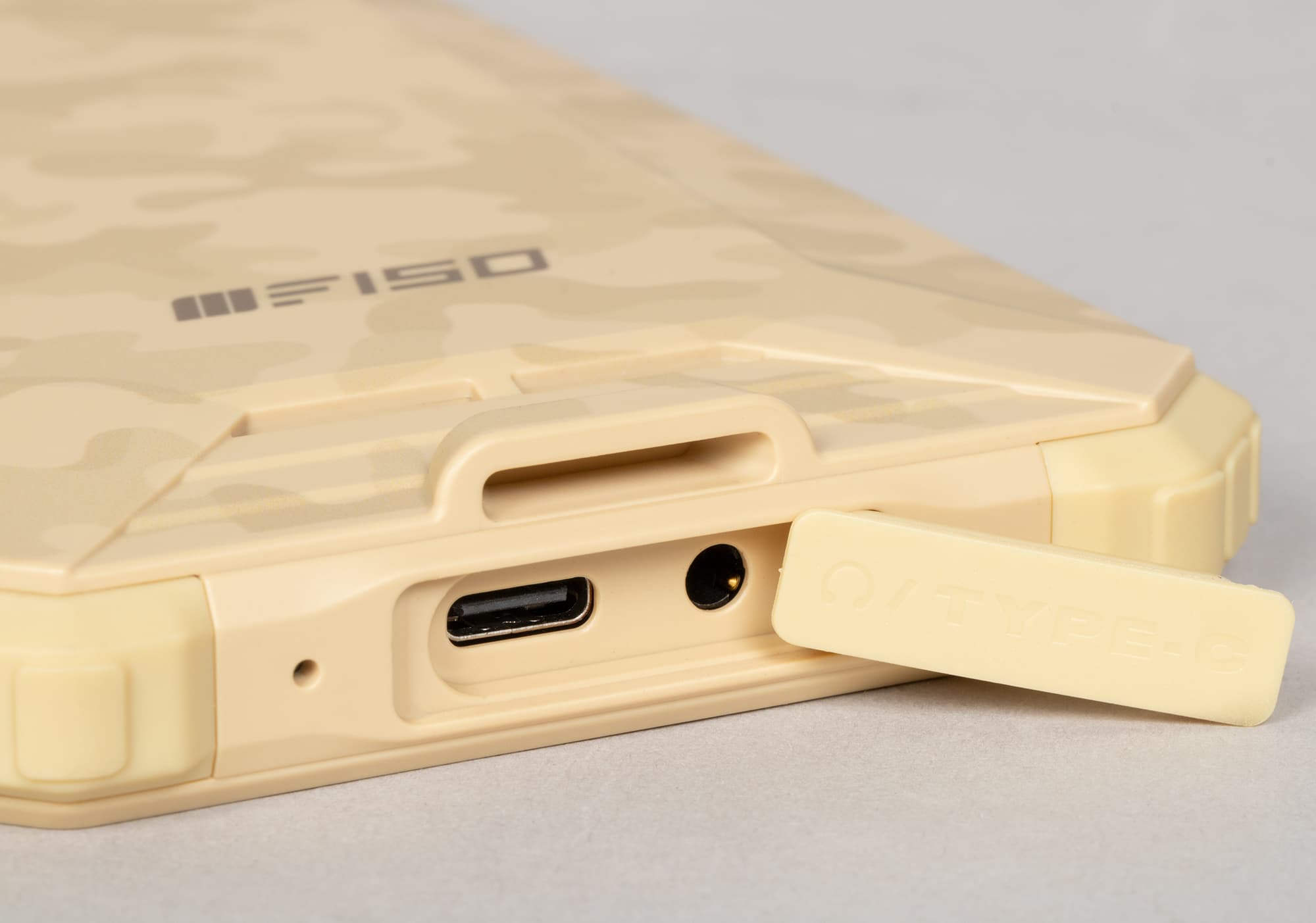 Верхний торец пустует. На нижнем размещены 3,5-миллиметровый аудиовыход для наушников, микрофон и разъем USB Type-C. Все разъемы надежно прикрыты плотными прорезиненными заглушками, которые довольно трудно вытащить ногтем — лучше использовать всё тот же комплектный крючок. Основной динамик выведен на спинку смартфона.